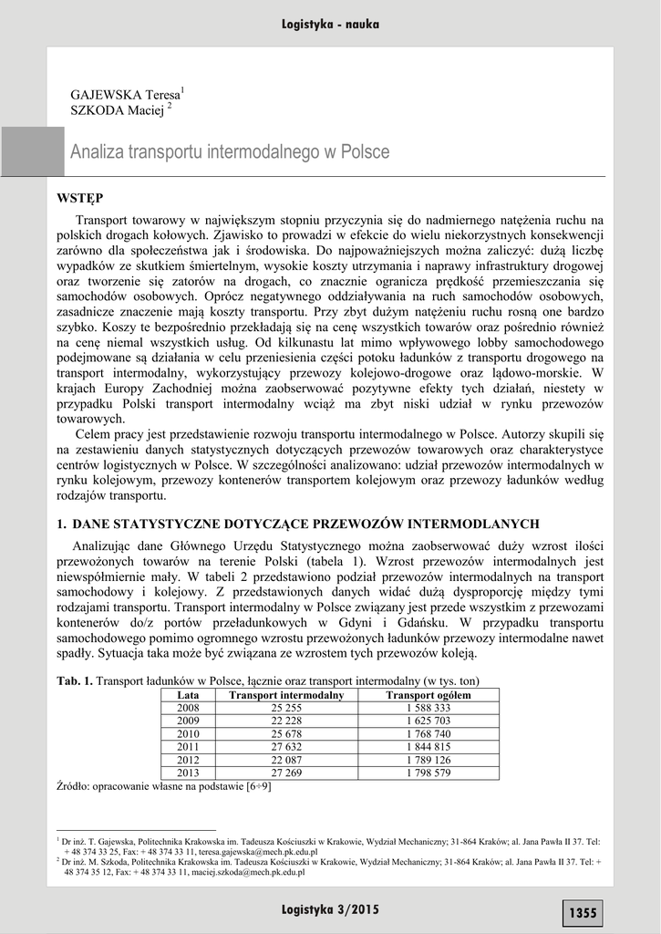 T. Gajewska, M. Szkoda - Analiza transportu intermodalnego w Polsce