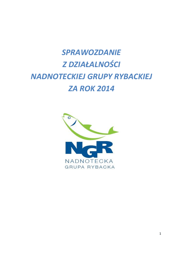 SPRAWOZDANIE Z DZIAŁALNOŚCI NADNOTECKIEJ GRUPY RYBACKIEJ ZA ROK 2014 1 SPIS TREŚCI SPIS TREŚCI .................................................................................................................................. 2 I. Nazwa Stowarzyszenia. ..................................................................................................... 4 II. Siedziba i adres Stowarzyszenia. ........................................................................................ 4 III. Nr w Krajowym Rejestrze Sądowym. .................................................................................. 4 IV. Skład Zarządu Nadnoteckiej Grupy Rybackiej. .................................................................... 4 V. Skład Komisji Rewizyjnej.................................................................................................... 4 VI. Cele statutowe Stowarzyszenia. ......................................................................................... 4 VII. Informacje na temat prowadzenia działalności gospodarczej i odpłatnej. ........................... 4 VIII. Opis działalności prowadzonej w 2014 r. ............................................................................ 5 1. Umowa o warunkach i sposobie realizacji LSROR. .............................................................. 5 2. Realizacja zobowiązań wynikających z umowy o warunkach i sposobie realizacji LSROR w 2013 roku. .................................................................................................................................... 5 3. Funkcjonowanie Nadnoteckiej Grupy Rybackiej oraz nabywanie umiejętności i aktywizacja lokalnych społeczności. ................................................................................................................. 9 3.1 Realizacja umowy o dofinansowanie w ramach środka 4.1 Rozwój obszarów zależnych od rybactwa, w zakresie realizacji operacji polegających na funkcjonowaniu lokalnej grupy rybackiej (LGR) oraz nabywaniu umiejętności i aktywizacji lokalnych społeczności w 2014 roku. .................... 9 3.1.1. Przygotowanie LSROR. .............................................................................................................. 9 3.1.2. Administrowanie LGR. ............................................................................................................... 9 3.1.3. Badania dotyczące obszaru objętego LSROR. ......................................................................... 10 3.1.4. Działania informacyjne dotyczące realizacji LSROR lub działalności LGR. ............................... 11 3.1.5. Szkolenia pracowników LGR, członków zarządu oraz członków Komitetu LGR. ..................... 13 3.1.6. Realizacja wydarzeń promocyjnych lub kulturalnych związanych z obszarem objętym LSROR lub działalnością LGR. ........................................................................................................................ 13 3.1.7. Działania aktywizujące lokalne społeczności........................................................................... 14 IX. Walne Zebrania Członków NGR W 2014 roku. .................................................................. 15 1. Członkowie NGR. ................................................................................................................... 15 2. Walne Zebrania Członków NGR w roku 2014 oraz uchwały na nich podejmowane. ......... 15 2.1 Walne Zebranie Członków NGR – 25.03.2014 r. ......................................................................... 15 2.2 Walne Zebranie Członków NGR – 30.06.2014 r. ......................................................................... 15 2 X. Posiedzenia Zarządu NGR w 2014 roku. ............................................................................ 16 1. Posiedzenie Zarządu Nadnoteckiej Grupy Rybackiej z dnia 25.02.2014 r. ................................ 16 2. Posiedzenie Zarządu Nadnoteckiej Grupy Rybackiej z dnia 30.05.2014 r. ................................ 16 3. Posiedzenie Zarządu Nadnoteckiej Grupy Rybackiej z dnia 03.07.2014 r. ................................ 17 4. Posiedzenie Zarządu Nadnoteckiej Grupy Rybackiej z dnia 03.09.2014 r. ................................ 18 5. Posiedzenie Zarządu Nadnoteckiej Grupy Rybackiej z dnia 13.10.2014 r. ................................ 18 3 I. Nazwa Stowarzyszenia. Nadnotecka Grupa Rybacka II. Siedziba i adres Stowarzyszenia. ul. Dąbrowskiego 8/509, 64-920 Piła III. Nr w Krajowym Rejestrze Sądowym. Nr w Krajowym Rejestrze Sądowym 0000338900 – Sąd Rejonowy VII Wydział Gospodarczy KRS w Poznaniu IV. Skład Zarządu Nadnoteckiej Grupy Rybackiej. Eugeniusz Bogdan - Prezes NGR Lidia Pirtań - Wiceprezes NGR Krzysztof Czarnecki - Wiceprezes NGR Joanna Sanocka-Pertek - Skarbnik Zarządu Zdzisław Cebula - Sekretarz Zarządu Andrzej Błaszczyk - członek Zarządu Aleksandra Ratajczak - członek Zarządu Marek Kupś - członek Zarządu V. Skład Komisji Rewizyjnej. Szarek Edward – Przewodniczący Komisji Rewizyjnej Reprezentant Gminy Wałcz - Wiceprzewodniczący Komisji Rewizyjnej Zbierajewski Jerzy - Sekretarz Komisji Rewizyjnej VI. Cele statutowe Stowarzyszenia. Celem Stowarzyszenia jest aktywizacja społeczności lokalnej terenów zależnych od rybactwa, a w szczególności: a) b) c) d) VII. działanie na rzecz zrównoważonego rozwoju obszarów rybackich; aktywizacja mieszkańców obszarów zależnych od rybactwa; działania wskazane w Lokalnej Strategii Rozwoju Obszarów Rybackich (LSROR) łagodzenie skutków zmian strukturalnych w sektorze rybackim. Informacje na temat prowadzenia działalności gospodarczej i odpłatnej. Stowarzyszenie nie prowadzi działalności gospodarczej. Stowarzyszenie nie prowadzi działalności odpłatnej. 4 VIII. Opis działalności prowadzonej w 2014 r. 1. Umowa o warunkach i sposobie realizacji LSROR. W dniu 23 listopada 2010 roku w Warszawie została zawarta um