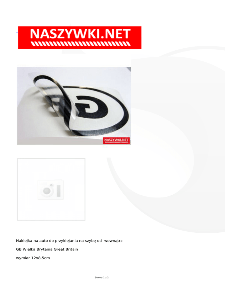 Naklejka na auto do przyklejania na szybę od wewnątrz GB Wielka Brytania Great Britain wymiar 12x8,5cm Strona 1 z 2 Naklejka wykonana z folii samoprzylepnej wysokiej jakości (siedmioletniej) Strona 2 z 2
