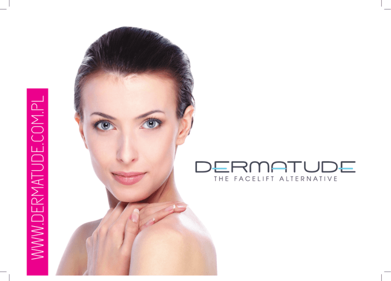 WWW.DERMATUDE.COM.PL Dermatude to najnowsza ekskluzywna marka kosmetyczna stworzona przez Grupę NC założoną w 1993 roku. Od tego czasu firma stała się międzynarodową organizacją z własnymi zakładami produkcyjnymi, prowadzącą eksport do wielu krajów na całym świecie. Siedziba Grupy NC znajduje się w Holandii, z którego to miejsca zarządza się wieloma sprawami, począwszy od eksportu przez sprzedaż, przetwarzanie zamówień, projekt graficzny do marketingu. W 2009 r. firma uzyskała licencję w USA i założyła w USA oddział oraz akademię w Orlando, Floryda, a następnie kolejne biuro i akademię w Las Vegas, Newada. Koncepcja Metaterapii Dermatude została stworzona w 2010 r i wprowadzona na rynek krajowy w 2011 r. Eksport rozpoczął się w 2012 r. i pod koniec 2013 r. marka Dermatude dystrybuowana była w 22 krajach na całym świecie. DERMATUDE Alternatywa dla liftingu twarzy Headquarters, The Netherlands Warehouse, The Netherlands Office & Academy, Orlando Florida, USA Academy, Las Vegas, USA DZIAŁANIE OPÓŹNIAJĄCE PROCES STRZENIA SKÓRY Nowa fala w przemyśle Od wieków ludzie chcieli pozostać na zawsze młodzi, co spowodowało rozwój przemysłu W zakresie zabiegów zapobiegających starzeniu się skóry rynek oferuje wiele rożnych technik: kosmetycznego, w celu zwalczania oznak starzenia na całym świecie. Rynek produktów przeciwzmarszczkowych i odmładzających charakteryzuje się stale rosnącym popytem. Dzięki pokoleniu z wyżu demograficznego oraz wysokiemu poziomowi dochodów grup docelowych, rynek produktów przeciwzmarszczkowych i odmładzających będzie w przyszłości nadal rósł. Zabiegi nieinwazyjne üü Produkty zapobiegające starzeniu się skóry bazujące na kremach z aktywnymi składnikami, na przykład witaminami, Retin-A, AHA, koenzym Q10, Peptydy, Antyoksydanty, itd. üü Terapia hormonalna üü Mikrodermabrazja üü Peelingi chemiczne üü Terapia światłem LED Zabiegi inwazyjne üü Mikronakłuwanie üü Mezoterapia üü Roller Zabiegi medyczne Rezultat üü Iniekcje Toksyny Botulinowej üü Wypełniacze üü Laser 0 10 20 30 40 - Naturalny kolagen/elastyna - Zabiegi Inwazyjne - Metaterapia - Zabiegi Nieinwazyjne 50 60 70 Wiek üü Lifting twarzy/oczu Badania wykazują, że wzrost w przemyśle kosmetycznym wynika głównie z produktów i zabiegów opóźniających proces starzenia się skóry. Największa grupa docelowa (wiek 25 do 75 lat) jest powściągliwa wobec zabiegów medycznych. Z drugiej strony grupa docelowa poszukuje lepszych rezultatów niż te oferowane przez procedury nieinwazyjne. Metaterapia spełnia wymagania klientów. METATERAPIA Innowacja w kosmetologii Jak działa Metaterapia? Metaterapia to akronim od terapii Medical & Esthetical Tissue Activation (Medyczna i Estetyczna Stosując urządzenie Dermatude Meta-Ject FX 50 oraz dodatkową nakładką z ultracienkimi igłami w Aktywacja Tkanek): nowej metody odmładzania skóry, działania spowalniającego proces starzenia skórze można wykonać mikronakłucia. Skóra traktuje te praktycznie niewidoczne mikronakłucia jako się skóry, nawilżania i odnowy skóry. Metaterapia to terapia, którą może przeprowadzić specjalista uszkodzenie skóry i aktywuje swoje naturalne mechanizmy naprawcze. Dodatkowo, aktywuje ona kosmetologii i która stanowi jedyną szansę na zaoferowanie najnowszych technik poprawy wyglądu także produkcję kolagenu i elastyny. W rezultacie skóra jest odnowiona od wewnątrz poprzez skóry w salonie kosmetycznym. Metaterapia to unikalny zabieg z fantastycznymi rezultatami. regenerację tkanki skórnej. Zabieg wiąże się także z podaniem aktywnych składników do skóry w formie specjalnych serum (Subjectables), co umożliwia przeprowadzenie konkretnych i celowanych zabiegów, które są dopasowane do rodzaju skóry i celu zabiegu. Przed Metaterapia Po Odpowiednia głębokość Odpowiednia długość igły jest bardzo ważna dla uzyskania optymalnego rezultatu Metaterapii. Metaterapia polega na nakłuwaniu warstwy podstawnej skóry, aż do górnej warstwy skóry właściwej, co wspomaga produkcję kolagenu i elastyny bez ryzyka tworzenia się podskórnych blizn. Dlatego też Metaterapia jest dużo skuteczniejsza, bezpieczniejsza i nie ma ani krótko, ani długoterminowych skutków ubocznych przy powtarzanych aplikacjach. Całkowicie bezpieczna Metaterapia jest najbezpieczniejszą i najbardziej naturalną metodą w zakresie inwazyjnych zabiegów. Zaawansowane technicznie urządzenie cyfrowe z precyzyjnym uchwytem i opatentowanymi modułami igłowymi gwarantuje optymalne rezultaty bez ryzyka uszkodzenia skóry lub spowodowania blizn. Moduły z jednorazową igłą z membraną bezpieczeństwa zapobiegają zanieczyszczeniom. Czołowi dermatolodzy na całym świecie uważają Metaterapię za skuteczny i bezpieczny zabieg. Zalety üü Bezbolesny zabieg üü Brak konieczności znieczulania üü Krótki czas zabiegu üü Szybka regeneracja po zabiegu - kilka godzin üü Natychmiastowy rezultat üü Brak przerw w pracy podczas zabiegu üü Wykonanie do 2000 nakłuć na sekundę üü Klientka może nałożyć makijaż już następnego dnia üü Maksymalnie duża dawka specjalnych serum METATERAPIA KONTRA INNE INWAZYJNE ZABIEGI Metaterapia Mikronakłuwanie mikronakłucia w skórze. Końcówka igłowa (needle optymalnego rezultatu. Przyrząd do mikronakłuwania ma stamp) z 18 mikroigłami wykonuje tysiące mikronakłuć z napęd analogowy. A zatem częstotliwość nakłuwania nie prędkością 100 do 120 iniekcji na sekundę. Metaterapia ulega zmianie, nawet podczas oporu skóry i dlatego charakteryzuje się podwójną funkcją aktywną, mogą występić nieregularne nakłucia w różnych partiach kontrolowane mikronakłuwanie aktywuje naturalną skóry. Ultracienkie igły wykonują bezbolesne, niewidoczne Napęd iniekcji igłowych jest kluczowy dla uzyskania regenerację skóry i podaje odpowiednią ilość aktywnych składników do tej warstwy s
