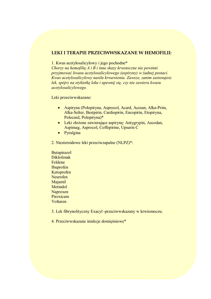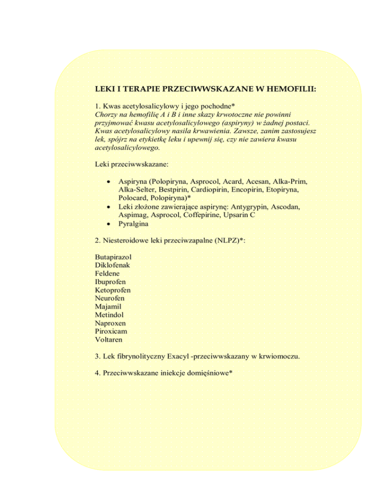 LEKI I TERAPIE PRZECIWWSKAZANE W HEMOFILII: