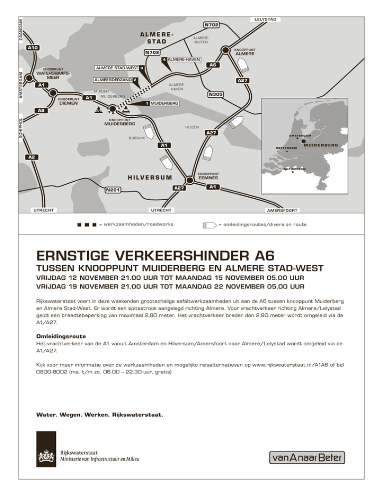veuillez consulter le site Internet www.rijkswaterstaat.nl/A1A6 ou téléphoner au numéro gratuit 0800-8002
