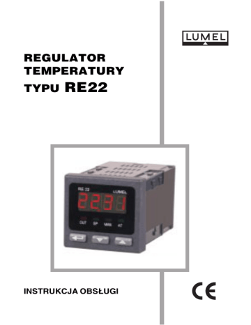 REGULATOR TEMPERATURY TYPU RE22 INSTRUKCJA OBS£UGI 1 2 Spis treci 1. Zastosowanie ............................................................................ 5 2. Zestaw regulatora ..................................................................... 6 3. Przygotowanie regulatora do pracy ....................................... 6 3.1. Bezpieczeñstwo .................................................................. 6 3.2. Instalowanie regulatora w tablicy ........................................ 7 3.3. Pod³¹czenia elektryczne ..................................................... 8 3.4. Zalecenia instalacyjne ......................................................... 9 4. Rozpoczêcie pracy ................................................................. 10 5. Programowanie parametrów regulatora .............................. 11 5.1. Schemat menu regulatora .................................................. 11 5.2. Zmiana nastawy ................................................................ 13 5.3. Lista parametrów ............................................................... 14 6.Wejcia i wyjcia regulatora .................................................. 17 6.1. Wejcie pomiarowe ........................................................... 17 6.2. Wyjcie .............................................................................. 18 7. Regulacja ................................................................................. 19 7.1. Regulacja za³¹cz-wy³¹cz (ON-OFF) .................................. 19 7.2. Regulacja PID .................................................................... 19 8. Funkcje dodatkowe ................................................................ 20 8.1. Wywietlanie sygna³u steruj¹cego .................................... 20 8.2. Regulacja rêczna ............................................................... 20 8.3. Zachowanie regulatora po uszkodzeniu czujnika ............. 20 8.4. Prêdkoæ zmiany wartoci zadanej - miêkki start ............. 21 8.5. Nastawy fabryczne ............................................................ 21 9. Dobór nastaw parametrów PID ............................................. 21 9.1. Autoadaptacja .................................................................... 21 9.2. Rêczny dobór nastaw parametrów PID ............................ 23 10. Sygnalizacja b³êdów ............................................................ 25 11. Dane techniczne ................................................................... 26 12. Kod wykonañ regulatora ..................................................... 29 3 4 1. ZASTOSOWANIE Regulator RE22 wspó³pracuje bezporednio z czujnikami temperatury typu rezystancyjnego i termoelektrycznego lub przetwornikami wielkoci na sygna³ standardowy. Przeznaczony jest do regulacji temperatury w przemyle tworzyw sztucznych, przemyle spo¿ywczym, suszarnictwie i wszêdzie tam, gdzie zachodzi koniecznoæ stabilizacji zmian temperatury. Wejcie pomiarowe jest uniwersalne dla termorezystorów, termopar lub dla sygna³ów standardowych liniowych. Wyjcie przekanikowe, o konfiguracji zwierno-rozwiernej, pozwala na bezporednio sterowanie obiektów niedu¿ej mocy. Mo¿liwa jest tak¿e regulacja rêczna i miêkki start. Dodatkowo mo¿na zabezpieczyæ siê przed zmian¹ parametrów za pomoc¹ has³a. Funkcja autoadaptacji ma za zadanie dobranie nastaw PID w celu szybkiego zaadaptowania sygna³u wyjciowego do parametrów obiektu. 5 2. ZESTAW REGULATORA 1 RE22 1234 OUT SP MAN AT W sk³ad zestawu regulatora wchodz¹: 1. regulator .................................................... 1 szt. 2. wtyk z 6 zaciskami rubowymi ................. 1 szt. 3. wtyk z 8 zaciskami rubowymi ................. 1 szt. 4. uchwyt do mocowania w tablicy ............... 2 szt. 5. instrukcja obs³ugi ...................................... 1 szt. 6. karta szybkiego uruchomienia ................. 1 szt. 7. karta gwarancyjna .................................... 1 szt. 3. PRZYGOTOWANIE REGULATORA DO PRACY 3.1. Bezpieczeñstwo Regulator RE22 spe³nia wymagania dotycz¹ce bezpieczeñstwa elektrycznych przyrz¹dów pomiarowych automatyki wg normy PN-EN 61010-1, wymagania dotycz¹ce odpornoci na zak³ócenia elektromagnetyczne wg normy PN-EN 61000-6-2 oraz emisji zak³óceñ elektromagnetycznych wystêpuj¹cych w rodowisku przemys³owym wg normy PN-EN 61000-6-4. 6 3.2. Instalowanie regulatora w tablicy Przymocowaæ regulator do tablicy dwoma uchwytami rubowymi wg rys.1. Otwór w tablicy powinien mieæ wymiary 45+0,6 x 45+0,6 mm. Gruboæ materia³u, z którego wykonano tablicê, nie mo¿e przekraczaæ 15 mm. Rys.1. Mocowanie regulatora. Wymiary regulatora przedstawiono na rys. 2. max. 93 70 48 8 48 RE22 OUT SP MAN AT max.15 Rys.2 Wymiary regulatora. 7 3.3. Pod³¹czenia elektryczne Wykonaæ pod³¹czenia elektryczne do listew zaciskowych a nastêpnie listwy wcisn¹æ do gniazd regulatora. 8 7 6 5 4 3 2 1 sygna³y wejœciowe 8 9 7 9 10 11 wyjœcie 12 13 14 zasilanie Rys.3 Widok listew pod³¹czeniowych regulatora. termorezystor Pt100 w uk³adzie 2-przewodowym termoelement termorezystor Pt100 w uk³adzie 3-przewodowym wejcie pr¹dowe 0/4..20 mA termorezystor Pt1000 wejcie napiêciowe 0..5/10 V Rys.4. Pod³¹czenie sygna³ów wejciowych. 8 9 10 11 10 - 11 + + SSR zasilanie odb. zasilanie wyjcie - przekanik odb. zasilanie wyjcie - binarne napiêciowe do sterowania SSR Rys.5. Pod³¹czenie zasilania i obwodu obci¹¿enia Przy pod³¹czaniu zasilania nale¿y pamiêtaæ, ¿e w instalacji budynku powinien byæ wy³¹cznik lub wy³¹cznik automatyczny, umieszczony w pobli¿u urz¹dzenia, ³atwo dostêpny dla operatora i odpowiednio oznakowany. 3.4. Zalecenia instalacyjne Regulator RE22 spe³nia wymagania dotycz¹ce odpornoci na zak³ócenia elektromagnetyczne wystêpuj¹ce w rodowisku przemys³owym wg obowi¹zuj¹cych norm. W celu uzyskania pe³nej odpornoci regulatora na zak³ócenia elektromagnetyczne w rodowisku o nieznanym p