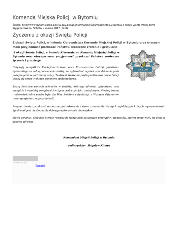 Komenda Miejska Policji w Bytomiu Życzenia z okazji Święta Policji