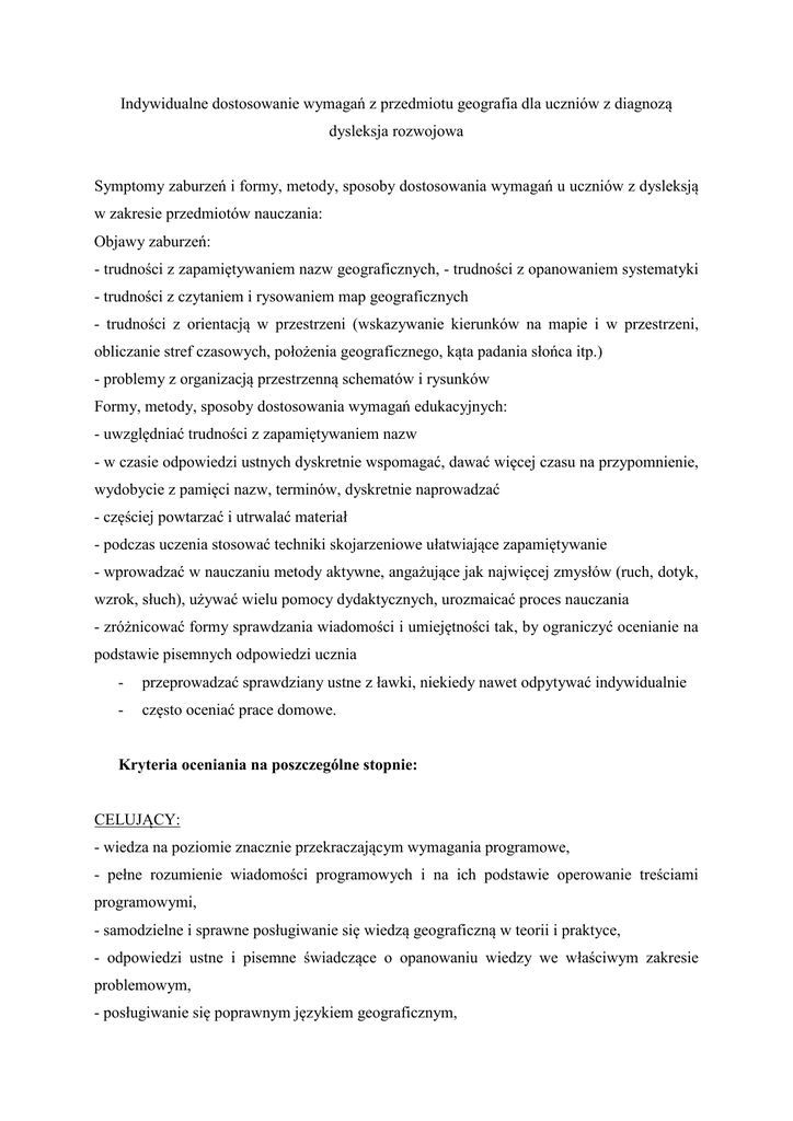 Indywidualne dostosowanie wymagań z przedmiotu geografia dla