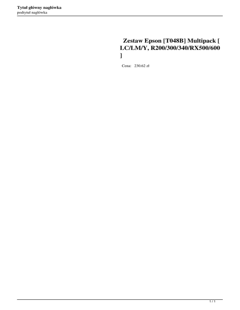 Tytuł główny nagłówka podtytuł nagłówka Zestaw Epson [T048B] Multipack [ LC/LM/Y, R200/300/340/RX500/600 ] Cena: 230.62 zł 1/1 Powered by TCPDF (www.tcpdf.org)