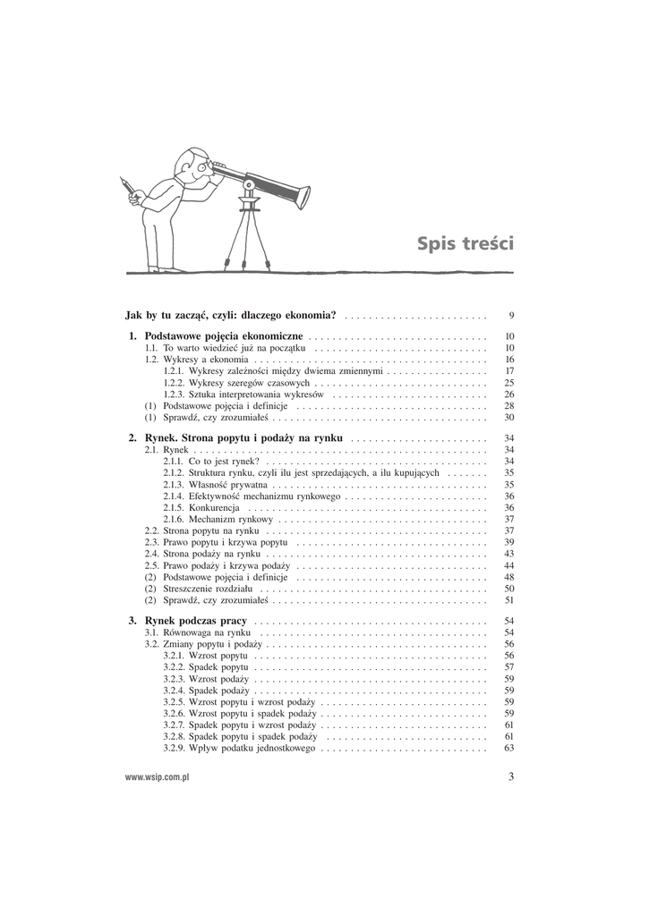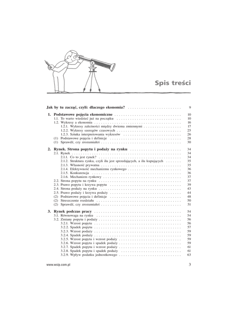 Spis treÊci Jak by tu zacząć, czyli: dlaczego ekonomia? . . . . . . . . . . . . . . . . . . . . . . . . 9 1. Podstawowe pojęcia ekonomiczne . . . . . . . . . . . . . . . . . . . . . . . . . . . . . . 10 10 16 17 25 26 28 30 1.1. To warto wiedzieć już na początku . . . . 1.2. Wykresy a ekonomia . . . . . . . . . . . . . . 1.2.1. Wykresy zależności między dwiema 1.2.2. Wykresy szeregów czasowych . . . . 1.2.3. Sztuka interpretowania wykresów . (1) Podstawowe pojęcia i definicje . . . . . . . (1) Sprawdź, czy zrozumiałeś . . . . . . . . . . . ........ ........ zmiennymi ........ ........ ........ ........ . . . . . . . . . . . . . . . . . . . . . . . . . . . . . . . . . . . . . . . . . . . . . . . . . . . . . . . . . . . . . . . . . . . . . . . . . . . . . . . . . . . . . . . . . . . . . . . . . . . . . . . . . . . . . . . . . . . . . . . 2. Rynek. Strona popytu i podaży na rynku . . . . . . . . . . . . . . . . . . . . . . . 2.1. Rynek . . . . . . . . . . . . . . . . . . . . . . . . . . . . . . . . . . . . . . . . . . 2.1.1. Co to jest rynek? . . . . . . . . . . . . . . . . . . . . . . . . . . . . . . 2.1.2. Struktura rynku, czyli ilu jest sprzedających, a ilu kupujących 2.1.3. Własność prywatna . . . . . . . . . . . . . . . . . . . . . . . . . . . . . 2.1.4. Efektywność mechanizmu rynkowego . . . . . . . . . . . . . . . . . 2.1.5. Konkurencja . . . . . . . . . . . . . . . . . . . . . . . . . . . . . . . . . 2.1.6. Mechanizm rynkowy . . . . . . . . . . . . . . . . . . . . . . . . . . . . 2.2. Strona popytu na rynku . . . . . . . . . . . . . . . . . . . . . . . . . . . . . . 2.3. Prawo popytu i krzywa popytu . . . . . . . . . . . . . . . . . . . . . . . . . 2.4. Strona podaży na rynku . . . . . . . . . . . . . . . . . . . . . . . . . . . . . . 2.5. Prawo podaży i krzywa podaży . . . . . . . . . . . . . . . . . . . . . . . . . (2) Podstawowe pojęcia i definicje . . . . . . . . . . . . . . . . . . . . . . . . . (2) Streszczenie rozdziału . . . . . . . . . . . . . . . . . . . . . . . . . . . . . . . (2) Sprawdź, czy zrozumiałeś . . . . . . . . . . . . . . . . . . . . . . . . . . . . . . . . . . . . . . . . . . . . . . . . . . . . . . . . . . . . . . . . . . . . . . . . . . . . . . . . . . . . . . . . . . . . . . . . . . . . . . . . . . . . . . . . . . . . . . . . . . . . . . . 3. Rynek podczas pracy . . . . . . . . . . . . . . . . . . . . . . . . . . . . . . . . . . . . . . . 3.1. Równowaga na rynku . . . . . . . . . . 3.2. Zmiany popytu i podaży . . . . . . . . . 3.2.1. Wzrost popytu . . . . . . . . . . . 3.2.2. Spadek popytu . . . . . . . . . . . 3.2.3. Wzrost podaży . . . . . . . . . . . 3.2.4. Spadek podaży . . . . . . . . . . . 3.2.5. Wzrost popytu i wzrost podaży 3.2.6. Wzrost popytu i spadek podaży 3.2.7. Spadek popytu i wzrost podaży 3.2.8. Spadek popytu i spadek podaży 3.2.9. Wpływ podatku jednostkowego www.wsip.com.pl . . . . . . . . . . . . . . . . . . . .. . . . . . . . . . . . . . . . . . . . . . . . . . . . . . . . . . . . . . . . . . . . . . . . . . . . . . . . . . . . . . . . . . . . . . . . . . . . . . . . . . . . . . . . . . . . . . . . . . . . . . . . . . . . . . . . . . . . . . . . . . . . . . . . . . . . . . . . . . . . . . . . . . . . . . . . . . . . . . . . . . . . . . . . . . . . . . . . . . . . . . . . . . . . . . . . . . . . . . . . . . . . . . . . . . . . . . . . . . . . . . . . . . . . . . . . . . . . . . . . . . . . . . . . . . . . . . . . . . . . . . . . . . . . . . . . . . . . . . . . . . . . . . . 34 34 34 35 35 36 36 37 37 39 43 44 48 50 51 54 54 56 56 57 59 59 59 59 61 61 63 3 3.3. Elastyczność popytu . . . . . . . . . . . . 3.3.1. Cenowa elastyczność popytu . . . 3.3.2. Dochodowa elastyczność popytu 3.3.3. Mieszana elastyczność popytu . . 3.4. Elastyczność podaży . . . . . . . . . . . . (3) Podstawowe pojęcia i definicje . . . . . (3) Streszczenie rozdziału . . . . . . . . . . . (3) Sprawdź, czy zrozumiałeś . . . . . . . . . . . . . . . . . 64 64 70 70 71 73 73 74 4. Decyzje konsumenta . . . . . . . . . . . . . . . . . . . . . . . . . . . . . . . . . . . . . . . . 78 79 80 82 85 86 87 90 92 92 93 4.1. 4.2. 4.3. 4.4. 4.5. 4.6. 4.7. (4) (4) (4) . . . . . . . . . . . . . . . . Konfrontacja korzyści i kosztów . . . . . . Użyteczność . . . . . . . . . . . . . . . . . . . . Preferencje i krzywe obojętności . . . . . . Ścieżka cen, czyli ograniczenie budżetowe Równowaga konsumenta . . . . . . . . . . . . Zmiany stanu równowagi konsumenta . . . Koszty alternatywne . . . . . . . . . . . . . . Podstawowe pojęcia i definicje . . . . . . . Streszczenie rozdziału . . . . . . . . . . . . . Sprawdź, czy zrozumiałeś . . . . . . . . . . . . . . . . . . . . . . . . . . . . . . . . . . . . . . . . . . . .... .... .... ... .... .... .... .... .... .... . . . . . . . . . . . . . . . . . . . . . . . . . . . . . . . . . . . . . . . . . . . . . . . . . . . . . . . . . . . . . . . . . . . . . . . . . . . . . . . . . . . . . . . . . . . . . . . . . . . . . . . . . . . . . . . . . . . . . . . . . . . . . . . . . . . . . . . . . . . . . . . . . . . . . . . . . . . . . . . . . . . . . . . . . . . . . . . . . . . . . . . . . . . . . . . . . . . . . . . . . . . . . . . . . . . . . . . . . . . . . . . . . . . . . . . . . . . . . . . . . . . . . . . . . . . . . . . . . . . . . . . . . . . . . . . . . . . . . . . . . . . . . . . . . . . . . . . . . . . . . . . . . . . . . . . . . . . . . . . . . . . . . . . . . . . . . . . . . . . . . . . . . . . . . . . . . . . . . . . . . . . . . . . . . . 5. Decyzje producenta . . . . . . . . . . . . . . . . . . . . . . . . . . . . . . . . . . . . . . . . 5.1. 5.2. 5.3. 5.4. (5) (5) (5) Rodzaje firm . . . . . . . . . . . . . . . . Cele i ograniczenia firm . . . . . . . . . Funkcja produkcji w krótkim okresie Koszty w krótkim okresie . . . . . . . . Podstawowe pojęcia i definicje . . . . Streszczenie rozdziału . . . . . . . . . . Sprawdź, czy zrozumiałeś . . . . . . . . . . . . 