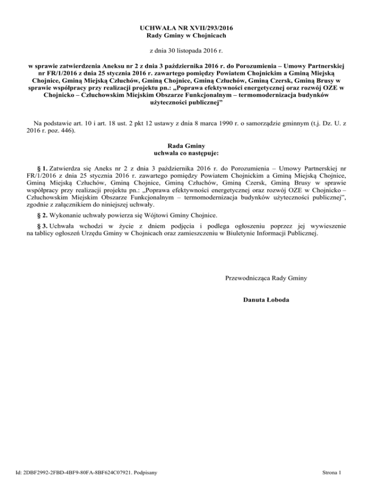 tresci przez organy stanowiace jednostek samorzadu terytorialnego, bedacych Stronami