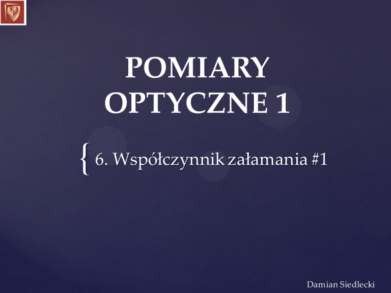 współczynnika załamania szkła metodą Wollastona-Kohlrauscha.