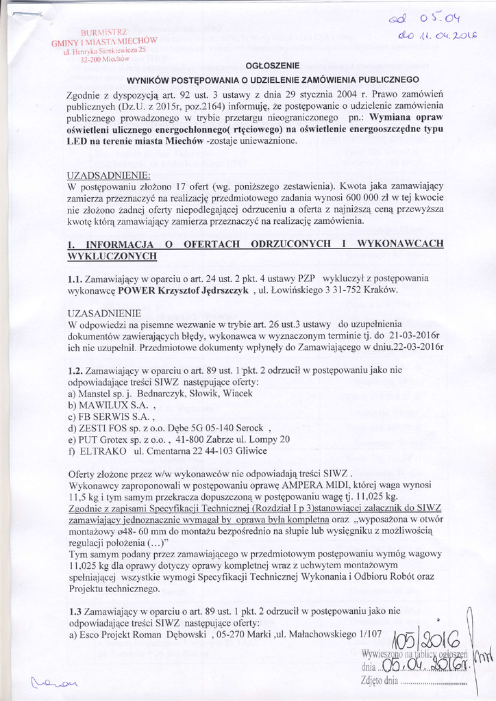 1.1.Zamaviającyw oparciuo art.24 tlst.2 pkt.4 ustawyPZP wyk|llczył.