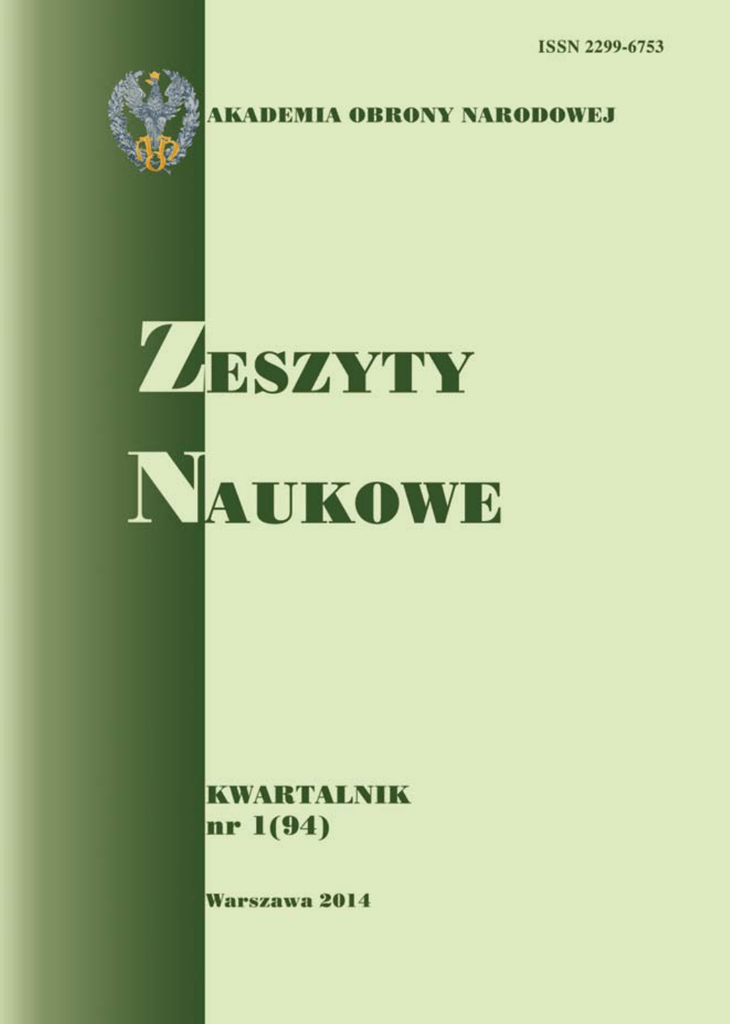 KOMITET NAUKOWY dr hab. inż. Andrzej Glen – przewodniczący, . prof. dr hab. Stanisław Zajas – zastępca przewodniczącego, prof. dr hab. Waldemar Kaczmarek – Wydział Zarządzania i Dowodzenia, prof. dr hab. Waldemar Kitler – Wydział Bezpieczeństwa Narodowego, . Dr James Corum – Bałtycka Akademia Obrony, Col. Miroslaw Dimitrov, Assoc. Prof. – Akademia Obrony Narodowej w Sofii, Lieutenant-General Professor Teodor Frunzeti, PhD – Uniwersytet Obrony Narodowej . w Bukareszcie, Doc. Ing. Mariana Kuffova, Assoc. Prof. – Akademia Sił Zbrojnych Słowacji, . Professor Pavel Necas – Akademia Sił Zbrojnych Słowacji, Col. Dimitar Tashkov, Assoc. Prof., PhD – Akademia Obrony Narodowej w Sofii, . mgr Adam Szynal Redaktor naukowy: dr hab. Piotr Gawliczek Zespół redakcyjny: mgr Anna Doraczyńska – redaktor naczelna (tel. 6/813-516), mgr Jeremy Wysakowski-Walters – redakcja tekstów angielskich Terry Andrew Deal – redakcja tekstów angielskich Lista recenzentów Commander Professor Vasile BUCINSCHI, Ph.D.; Assoc. Prof. Dipl. Eng. Pavel BUČKA, Ph.D.; Colonel Assoc. Prof. Gheorghe CALOPĂREANU, Ph.D.; . Colonel Miroslav Stefan DIMITROV, Assoc. Prof.; Colonel Instructor Pascu FURNICĂ, Ph.D.; . Doc. Ing. Peter LIPTAK, Cs.C. ; Colonel Assoc. Prof. Iulian MARTIN, Ph.D.; . Colonel Professor Dimitar NEDYLKOV; Colonel Assoc. Prof. Constantin POPESCU, Ph.D.; Colonel Professor Ion ROCEANU, Ph.D.; Researcher Alexandra SARCINSCHI, Ph.D.; Assoc. Prof. Dipl. Eng. Peter SPILÝ, Ph.D.; dr hab. Andrzej Glen; . prof. dr hab. Waldemar KACZMAREK; prof. dr hab. Waldemar KITLER; . płk prof. dr hab. Dariusz KOZERAWSKI; prof. dr hab. Marian KOZUB; . dr hab. Zdzisław KURASIŃSKI; dr hab. ��������������� Józef MARCZAK; . płk prof. dr hab. Maciej MARSZAŁEK; płk dr hab. Wojciech NYSZK; . gen. dyw. w st. spocz. prof. dr hab. Bogusław PACEK; prof. dr hab. Jacek PAWŁOWSKI; . prof. dr hab. Piotr SIENKIEWICZ; dr hab. Stanisław SIRKO; . prof. dr hab. Zenon STACHOWIAK; płk prof. dr hab. Jarosław WOŁEJSZO; . prof. dr hab. Marek WRZOSEK; prof. dr hab. Stanisław ZAJAS; dr hab. Janusz ZUZIAK Adres redakcji: 00-910 Warszawa 72 al. gen. Antoniego Chruściela 103, bl. 4 tel./fax: (6)813-516 e-mail: [email protected] „Zeszyty Naukowe Akademii Obrony Narodowej” są indeksowane w międzynarodowej bazie Index Copernicus Master List. Artykuły publikowane w „Zeszytach Naukowych AON” są recenzowane przez specjalistów. Wyrażają indywidualne poglądy autorów; są również sprawdzane przez system antyplagiatowy. Nakładem Akademii Obrony Narodowej Skład, druk i oprawa: Wydawnictwo Akademii Obrony Narodowej, zam. nr 836/2014, nakład 200 egz. SPIS TREŚCI bezpieczeństwo narodowe NATIONAL SECURITY gen. dyw. w st. spocz. prof. dr hab. Bogusław PACEK Konsolidacja przemysłowego potencjału obronnego w Polsce. Uwarunkowania, dylematy i szanse .................................................................................................................................... 5 The consolidation of the defence industry potential in Poland. Conditions, ��������������������� dilemmas and opportunities .................................................................................................................................. 15 dr Robert BIAŁOSKÓRSKI NATO i ONZ – relacje podmiotów bezpieczeństwa międzynarodowego ............................................ 25 NATO & UN – the Relations of International Security Subjects ......................................................... 48 mł. insp. w st. spocz. dr Tomasz SAFJAŃSKI Pozycja Europolu w architekturze bezpieczeństwa .............................................................................. 71 Europol’s Position in the Security Architecture . .................................................................................. 82 mgr Mirella UKSIK Komunikacja międzykulturowa w biznesie – świat arabski ................................................................. 90 Intercultural Communication in Business – the Arab World .............................................................. 112 DOŚWIADCZENIA EXPERIENCE mgr Dariusz KOMPAŁA Użycie bezzałogowych statków powietrznych do rozpoznania powietrznego w wybranych konfliktach zbrojnych . ................................................................................................. 136 Using Unmanned Aerial Vehicles to Air Reconnaissance in Selected Military Conflict ................... 151 EKONOMIA BEZPIECZEŃSTWA I LOGISTYKA ECONOMY OF SECURITY AND LOGISTICS Zbyšek KORECKI; Ing, Ph.D. Miroslav CEMPÍREK, doc., Ing. CSc� THE NEW LOGISTICS SYSTEMS IN THE FRAMEWORK OF THE ARMED FORCES OF THE CZECH REPUBLIC ............................................................................................ 165 KSZTAŁCENIE I PRZYGOTOWANIE ZAWODOWE VOCATIONAL TRAINING AND PREPARATION prof. dr hab. inż. Józef JANCZAK mgr Ewa NOWAK mgr inż. Roman PAWŁOWSKI mgr Krzysztof GŁOWIŃSKI Wykorzystanie wybranych metod jakościowych i ilościowych w obszarze nauk społecznych . ....... 180 The Use of Selected Qualitative and Quantitative Methods in the Area of Social Sciences .............. 197 ppłk dr Wojciech WIĘCEK Higher Operational – Tactical Course. Trzy lata doświadczeń . ......................................................... 215 Higher Operational – Tactical Course. Three Years of Experience .................................................... 222 KOMUNIKATY, KOMENTARZE, RECENZJE I SPRAWOZDANIA COMMUNICATIONS, COMMENTS, REVIEWS AND REPORTS kmdr rez. dr hab. Piotr Gawliczek Komunikat nr 1 z warsztatów zorganizowanych w ramach programu NATO dot. wspierania transformacji systemu szkolnictwa wojskowego Ukrainy (grudzień 2013 roku) . ............................. 229 First communiqué from the academic events organized ������������������������