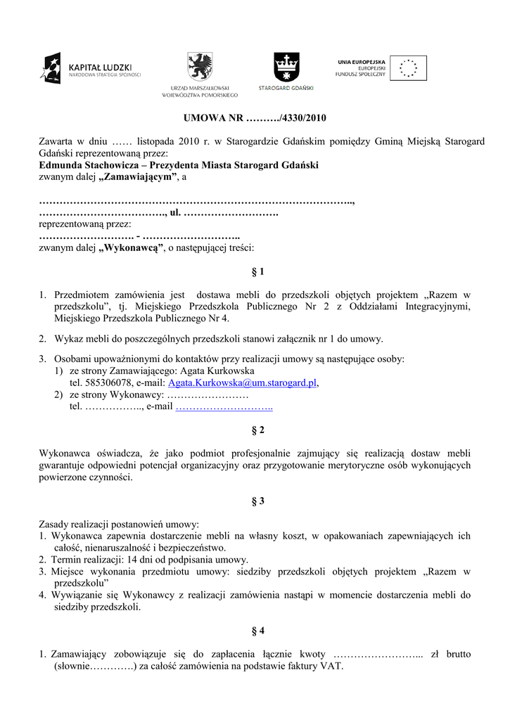 Wzór umowy - Gmina Miejska Starogard Gdański