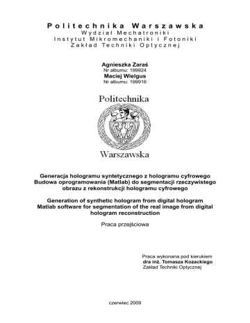 z rekonstrukcji hologramu cyfrowego, generujący binarną maskę dla hologramu. Przedyskutowano