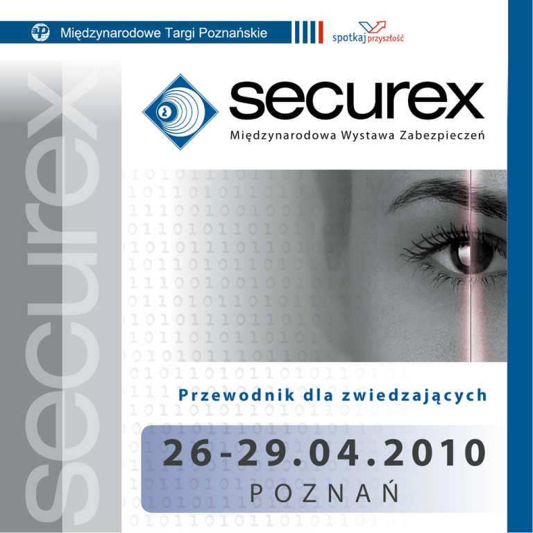 M i ę d z y n a ro d ow a W ys t aw a Z a b e z p i e c ze ń Przewodnik dla zwiedzających 2 6 -2 9. 0 4 . 2 010 POZNAŃ 2 Współpraca internetowa Współpraca prasowa WSPÓŁPRACA MEDIALNA CZASOPISMO BRANŻY SECURITY P L AT Y N O W Y W Y S TAW C A Szanowni Państwo, Z przyjemnością oddajemy w Państwa ręce przewodnik po Międzynarodowej Wystawie Zabezpieczeń SECUREX, ktora jest największym wydarzeniem branży zabezpieczeń w Polsce i Europie Środkowej. Podczas tegorocznej wystawy swoje produkty i usługi z dziedziny systemów wykrywania i zwalczania przestępczości, mechanicznych i elektronicznych systemów zabezpieczeń, systemów wizyjnego nadzoru (CCTV) oraz ochrony mienia przedstawi ponad 250 firm z Polski i zagranicy. Organizowany w cyklu dwuletnim SECUREX zapowiada się imponująco. Zaprezentowanych zostanie blisko 260 najnowszych produktów i usług, które będą miały swoje premiery rynkowe właśnie na targach. Opis „Nowości” oraz miejsce ich lokalizacji znajdą Państwo w niniejszej publikacji. Zapraszamy również do uczestnictwa w bogatym programie wydarzeń - konferencjach, seminariach, wykładach i pokazach, organizowanych z udziałem stowarzyszeń branżowych, instytucji i administracji rządowej oraz wystawców, dla wszystkich poszukujących najnowszej wiedzy praktycznej z dziedziny zabezpieczeń. Raz jeszcze zachęcam do odwiedzenia targów SECUREX, które oprócz kompleksowej oferty branży security, z pewnością będą dobrą okazją do nawiązania biznesowych kontaktów z przedstawicielami rynku polskiego i partnerami zagranicznymi oraz pozwolą Państwu uzupełnić wiedzę o najnowsze informacje z branży. Kolejna taka okazja dopiero za dwa lata! Z wyrazami szacunku, Joanna Jasińska Dyrektor Projektu SECUREX Obecność 25 0 f i rm z 19 k raj ów Ponad 5. 5 0 0 m 2 powierzchni wystawienniczej Targi nowości! B l i s ko 26 0 innowacyjnych produktów z branży Więcej na: w w w. securex.pl Zakres t e m at yc z ny • Mechaniczne systemy zabezpieczeń • Urządzenia do kontroli dostępu i nadzoru • Sprzęt zabezpieczająco -alarmowy w przypadku napadu, włamania i kradzieży • Systemy wizyjnego nadzoru i ochrony mienia • Ochrona przeciwpożarowa • Systemy ochrony danych - ochrona informacji • Pojedyncze elementy dla elektronicznych systemów zabezpieczeń • Zabezpieczenia transportu, pojazdy specjalne • Sprzęt i środki do samoobrony • Systemy wykrywania i zwalczania przestępczości • Elektroniczne systemy zarządzania budynkiem - inteligentny budynek • Usługi w zakresie ochrony i nadzoru • Systemy łączności i zarządzania w stanach kryzysowych - wyposażenie i sprzęt dla służb mundurowych • Organizacje, instytucje, szkolenia • Banki, ubezpieczenia • Literatura fachowa • Wykonawstwo - instalacja, dokumentacja, obsługa urządzeń ostrzegawczych 3 L I S TA F I R M O B E C N YC H N A TA R G A C H 4 3D POLSK A 4SAFE.PL POLSK A AAT HOLDING POLSK A ABEKOM POLSK A ACEE EUROPE POLSK A ACSS POLSK A ACTI CORPORATION TA JWAN ALARMNET POLSK A ALARMTECH POLSK A ALFARADIO POLSK A ALL4SAFE POLSK A ALNET SYSTEMS POLSK A ALPOL Poznań POLSK A ALPOL-Katowice POLSK A AMBIENT SYSTEM POLSK A AMICUS-AMO POLSK A AMZ-KUTNO POLSK A ANDEL POLSK A AR MEDIA INT. AB / DETEK TOR SZWEC JA ARPOL POLSK A ASTAT POLSK A ATLINE POLSK A AUMUELLER AUMATIC NIEMC Y AUTOID POLSK A POLSK A AVI ( AUTOMATIC VEHICLE IDENTIFICATION) HOLANDIA AXIS NIEMC Y BEIJING LANDWELL ELECTRON TECHNOLOGY CHINY BEOGUIP WIELK A BRY TANIA BFC BUILDING & FACILIT Y CENTER NIEMC Y BIOIDENT POLSK A BIURO OCHRONY SECURIT Y SYSTEM POLSK A BOSCH - ROBERT BOSCH POLSK A BOT T POLSK A BREMEX POLSK A BRICKCOM TA JWAN BT ELECTRONICS POLSK A C & C PARTNERS POLSK A CAMSAT POLSK A CAPITAL SAFET Y GROUP FRANC JA CARDCO POLSK A CASE-PACK POLSK A CBZ POLSK A CENTRAL, EASTERN EUROPE AND CIS ASSOCIATION TA JWAN CHIWOO IL KOREA POŁUDNIOWA CHOMTECH.PL POLSK A COMMEND AUSTRIA CONTROLSYS POLSK A CQR SECURIT Y WIELK A BRY TANIA CROSS POINT HOLANDIA DALLMEIER ELECTRONIC NIEMC Y DATA OPTICS POLAND POLSK A DCB POLSK A DEHORA CONSULTANCY GROUP POLSK A DEISTER ELECTRONIC NIEMC Y DELTA-OPTI POLSK A DFE SECURIT Y POLSK A DIPOL POLSK A D-MAX POLSK A POLSK A DONEGAL POLSK A DRAFTEL POLSK A DSC DIGITAL SECURIT Y CONTROLS K ANADA DYSK AM POLSK A DYSPENZER POLSK A DZINE NV BELGIA E.SIGMA SYSTEMS NIEMCY ECGUARD CHINY EDP SUPPORT POLSK A EKOTRADE POLSK A ELAMED „Promotor ”, „W Akcji” POLSK A ELECTRONIC POWER AND MARKET POLSK A ELEK TRONIK ART POLSK A ELPROMA ELEK TRONIK A POLSK A ELTRAF BIS POLSK A EMU POLSK A ES INSTAL POLSK A ESTELAR CZECHY EURO SECURIT Y Int ’L NIEMCY EUROALARM POLSK A EURO-MEDIA „Ochrona Mienia i Informacji” POLSK A EVERFOCUS TAIWAN TA JWAN FEN POLSK A FLIR COMMERCIAL VISION SYSTEM HOLANDIA FORTEC POLSK A POLSK A FORTEZA LITWA FORTUNA COMMUNICATION POLSK A GATEMA SZWEC JA GE SECURIT Y POLSK A GENEZIS POLSK A GENWAY POLSK A GEUTEBRUECK NIEMCY GJD WIELK A BRY TANIA GLOBE POLSK A GREEN CENTER POLSK A GTR HOLDING POLSK A GUNNEBO POLSK A POLSK A HABECO PROTECTION POLSK A HEITEL DIGITAL VIDEO NIEMCY HITACHI EUROPE WIELK A BRY TANIA HONEY WELL AUSTRIA HONEY WELL SECURIT Y WIELK A BRY TANIA IC INTRACOM POLSK A ICOM POLSK A POLSK A ICS-POLSK A POLSK A INFO-CAM POLSK A INNOVATIVE BUSINESS SOFTWARE DANIA INTER-SICHERHEITS-SERVICE POLSK A IP & S POLSK A ISM EUROCENTER POLSK A JABLOTRON ALARMS CZECHY JANEX INTERNATIONAL POLSK A JMD DANIEL TECHNOLOGIE POLSK A K ABA POLSK A POLSK A K ABE POLSK A KEYPROCESSOR HOLANDIA KIDDE POLSK A POLSK A KŁOS NOWOCZESNE TECHNOLOGIE BANKOWE POLSK A KOHER / VERSO TECHNOLOGIES POLSK A KOMENDA WOJEWÓDZK A POLIC JI W POZNANIU POLSK A KONCEPT-L POLSK A KONSMETAL POLSK A KOVIX POLSK A KRĄG MARS I MERKURY POLSK A POLSK A POLASZEK POLSK A POL-ITAL POLSK A POLIXEL POLSK A POLON-ALFA POLSK A POLSK A IZBA OCHRONY POLSK A POLSKIE STOW.LICENC JONOWANYCH SERWISÓW KLUCZOW YCH POLSK A POLVISION POLSK A POWERVIEW HOLANDIA PRODUS POLSK A PROFI CCT V POLSK A PRONAL POLSK 