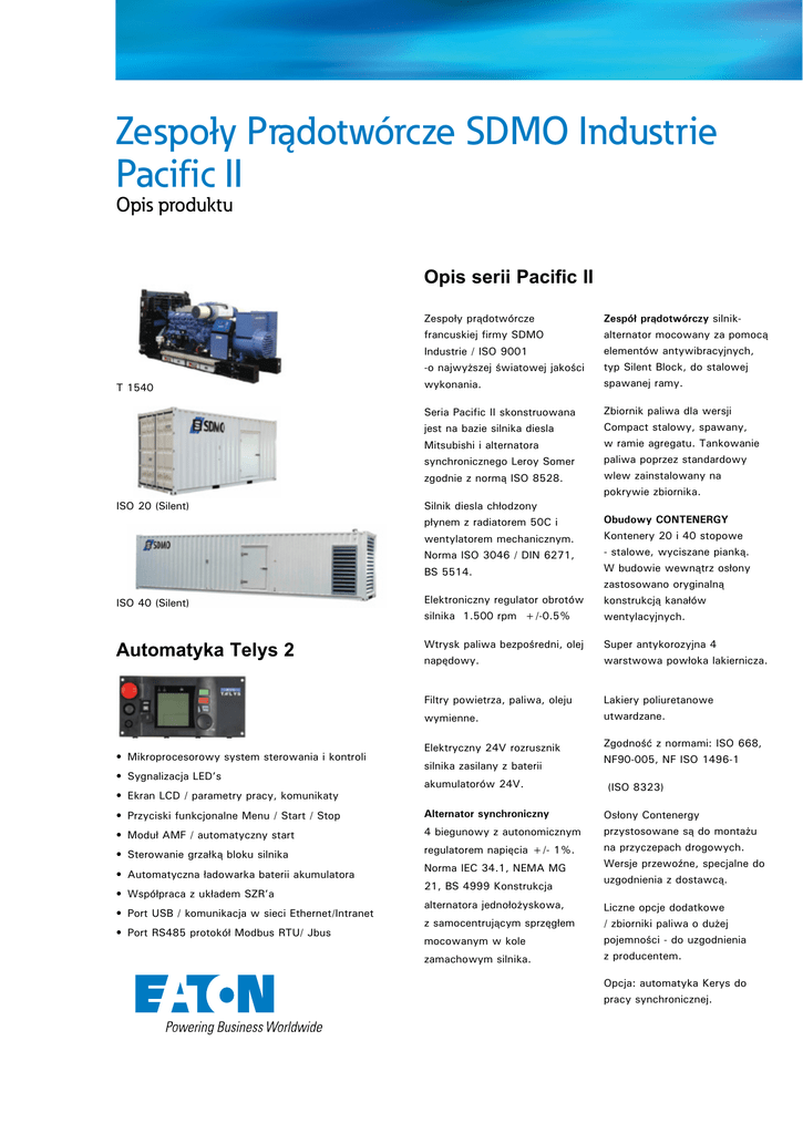 Zespoły Prądotwórcze SDMO Industrie Pacific II