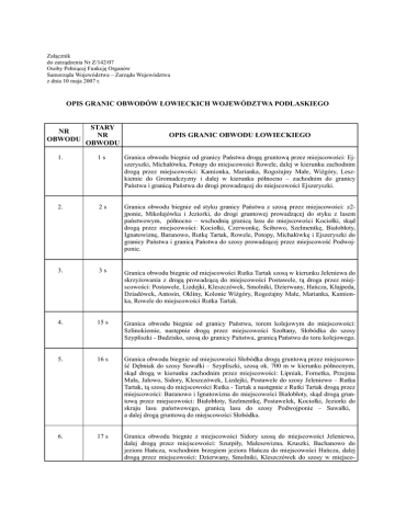 OPIS GRANIC OBWODÓW ŁOWIECKICH WOJEWÓDZTWA
