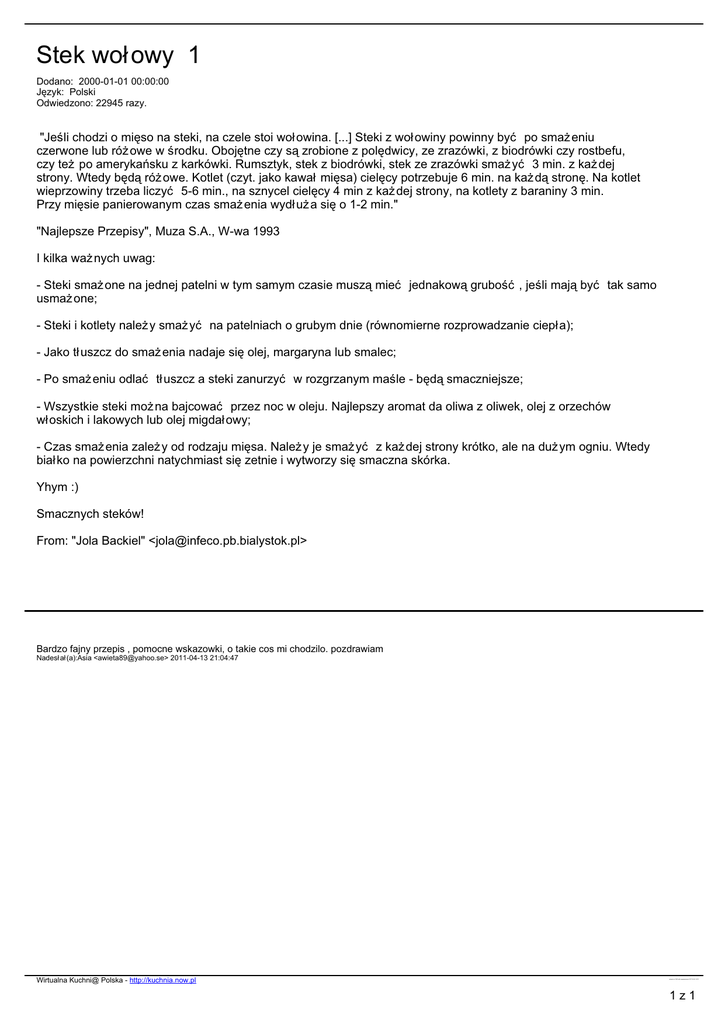 Stek wołowy 1 - Wirtualna Kuchnia Polska