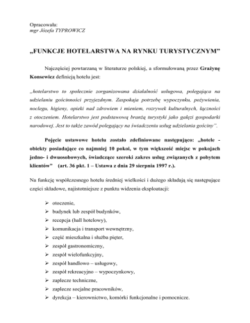„FUNKCJE HOTELARSTWA NA RYNKU TURYSTYCZNYM”