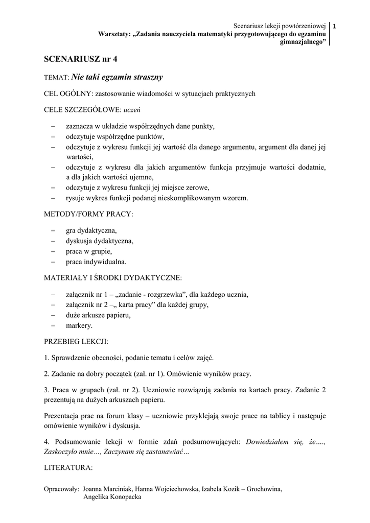 SCENARIUSZ nr 4 TEMAT: Nie taki egzamin straszny