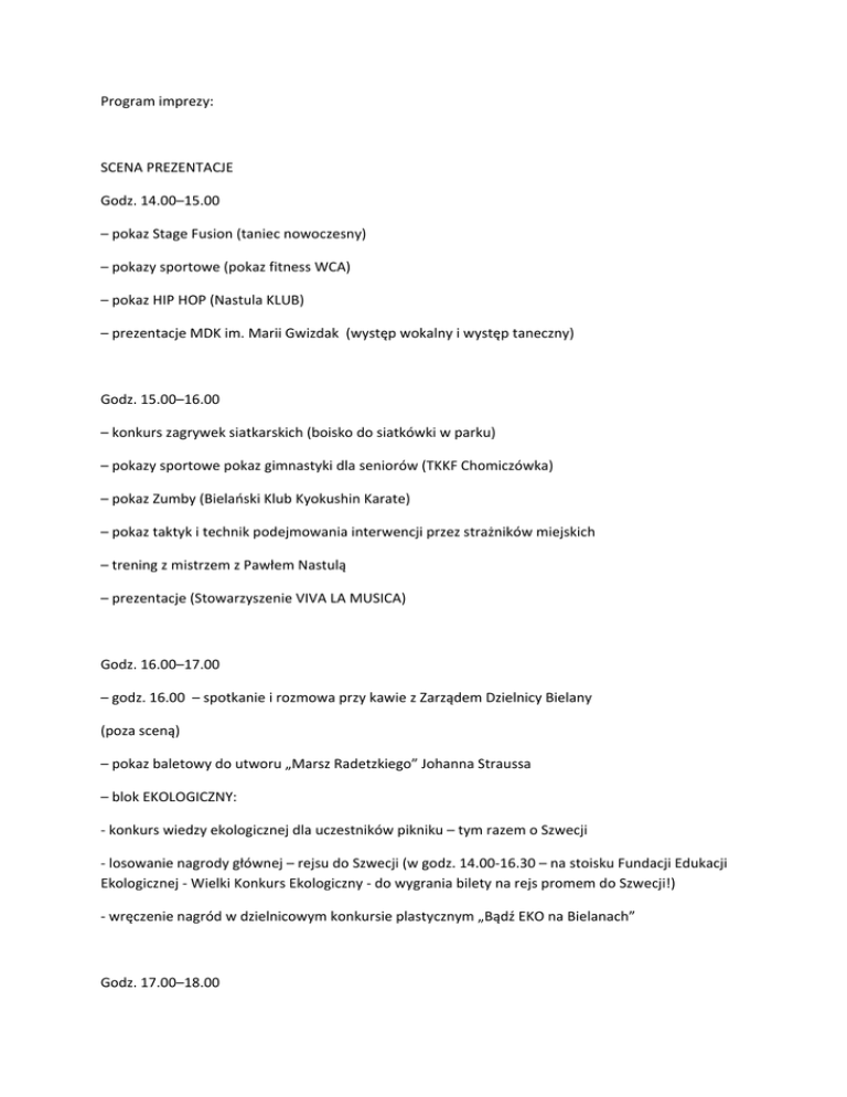 Program imprezy - Urząd Dzielnicy Bielany