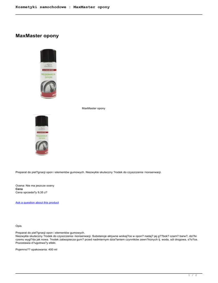 Kosmetyki samochodowe : MaxMaster opony
