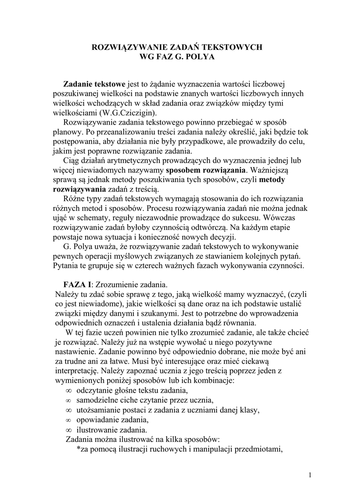 rozwiązywanie zadań tekstowych wg faz g. polya