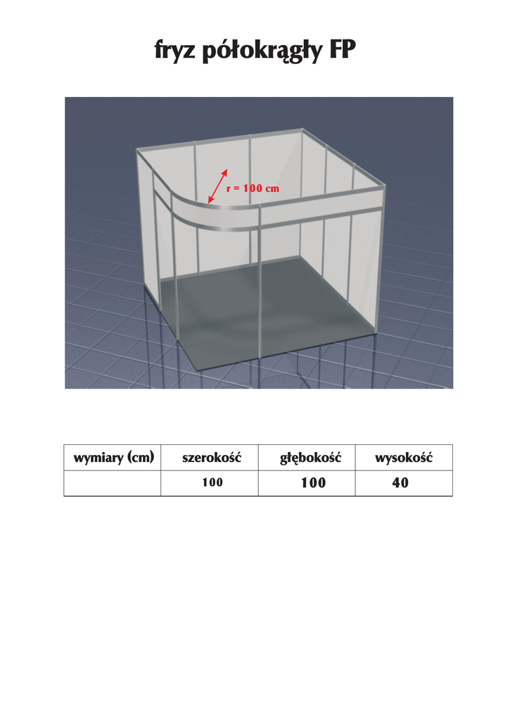 fryz pó³okr¹g³y FP r = 100 cm wymiary (cm) szerokoœæ g³êbokoœæ wysokoœæ 100 100 40