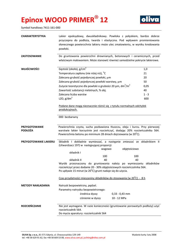 Epinox WOOD PRIMER 12 karta katalogowa 02.08