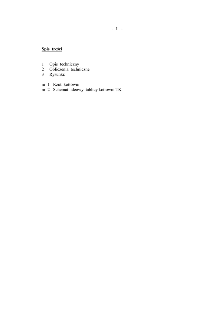 - 1 - Spis treści 1 2 3 Opis techniczny Obliczenia techniczne Rysunki: nr 1 Rzut kotłowni nr 2 Schemat ideowy tablicy kotłowni TK - 3 Opis techniczny Do projektu budowlanego instalacji elektrycznych dla kotłowni gazowej w budynku Wodociągi Zachodniopomorskie Spółka z o.o. w Goleniowie przy ul. I Brygady Legionów 8-10. Podstawa opracowania Projekt budowlany opracowano w ramach istniejących rzutów kotłowni. Dane wyjściowe 1 2 Rzut kotłowni Dane zebrane przez projektanta Zakres opracowania Zakres opracowania obejmuje wybudowanie instalacji elektrycznej, oświetlenia, gniazd wtykowych i zasilania kotłowni gazowej. Stan istniejący Istniejący budynek posiada zasilanie i układ pomiarowy. Zasilanie kotłowni gazowej. Zasilenie tablicy kotłowni gazowej wykonać przewodem 5-żyłowym z istniejącej tablicy rozdzielczej. Wyłącznik główny kotłowni Projektowany wyłącznik główny kotłowni przewidziano w szafce stalowej, osłoniętej drzwiczkami, zamykanymi na zamek patentowy, we wnęce na zewnętrznej ścianie kotłowni. W szafce wyłącznika głównego kotłowni, należy zamontować stycznik dla wyłączania zasilenia energii elektrycznej w kotłowni przez centralkę sterującą. Tablica rozdzielcza kotłowni „TK” Tablicę rozdzielczą „TK” przewidziano w pomieszczeniu kotłowni z osprzętem typu wyłączniki nadprądowe, styczniki i ochronniki przepięciowe. Tablica rozdzielcza IP 65 Instalacja oświetlenia podstawowego Instalację oświetlenia podstawowego, należy wykonać przewodem 3-żyłowym w korytku z osprzętem szczelnym IP65. - 4 - Oprawy oświetleniowe przewidziano jako jarzeniowe typu 2 x 36W szczelne IP65, zamontowane poniżej detektora gazy. Szczelne wyłączniki IP65, należy mocować na wys. 1,2m. Instalacja gniazd wtykowych Obwody gniazd wtykowych 2 x 16A/Z szczelne IP65, należy wykonać przewodem 3-żyłowym z osprzętem szczelnym IP65 w korytku. Instalacja Zasilanie regulatora wykonać przewodem 3-żyłowym w korytku. Z regulatora, należy zasilić czujnik temperatury zewnętrznej, zanurzeniowe czujniki temperatury wody, przylgowe czujniki temperatury wody, siłowniki zaworów regulacyjnych. Zewnętrzny czujnik temperatury mocować na zewnątrz budynku, od strony północnej na wys. 2,5m od poziomu terenu, w osłonie rurek stalowych. Zasilanie pomp wykonać przewodem 3-żyłowym w korytku. Instalacja wykrywania metanu W pomieszczeniu kotłowni przewidziano system detekcji gazu w skład którego wchodzą: centralka sterująca, zawór elektromagnetyczny, detektor gazu, sygnalizator optyczno-akustyczny. Z centralki sterującej należy zasilić zawór elektromagnetyczny, detektor gazu oraz sygnalizator optyczno-akustyczny. W czasie ulatniania się gazu centralka sterująca odetnie energię elektryczną w kotłowni. Z chwilą pojawienia się sygnału świetlnego i akustycznego, należy powiadomić o tym pogotowie gazowe. Instalacja ochronna Szynę wyrównawczą, należy wykonać z płaskownika stalowego ocynkowanego 30 x 4mm n.t. Wszystkie konstrukcje stalowe rurociągi zbiorniki stalowe, kanały wentylacji nawiewnej i wywiewnej oraz komina spalinowego należy dodatkowo uziemić. Płaskownik stalowy, należy połączyć z istniejącym uziomem otokowym instalacji odgromowej. Płaskownik stalowy, należy pomalować farbą olejną w paski na kolor żółtozielony. Po wykonaniu instalacji dokonać pomiaru oporności uziomu. Oporność uziomu nie może przekraczać 10Ω. W tablicy głównej budynku należy rozdzielić PEN na PE i N. Przewód neutralny oznaczyć kolorem niebieskim. Przewód PE oznaczyć kolorem żółtozielonym. - 5 Obliczenia techniczne Dobór zabezpieczeń i przekrojów przewodów wg PN-57/E-05022, PN-55/E-05021 grupa pierwsza i PN-91/E-05009 Obliczenie mocy Po= 2,0kW Jo= 3,0 A Przyjęto zabezpieczenie R303 10A Przyjmuję dla zasilania przewód YDY 5 x 4mm² Obliczenie spadku napięcia Delta U%= 100000 x 2 x 12 / 56 x 4 x 400 x 400 = 0,07% Ochrona samoczynne wyłączanie zasilania , wyłącznik różnicowoprądowy 30mA.