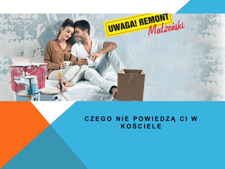 CZEGO NIE POWIEDZĄ CI W KOŚCIELE SACRUM PROFANUM przestrzeń, czas, aktywność, relacje DLACZEGO ROBIĆ REMONT W KOŚCIELE? • We wspólnocie Jezus żył w rodzinie a nie w parafii, zakonie • Wzrastanie droga wąska, kręta, • Czynienie uczniów życiodajność NAŚLADOWANIE CHRYSTUSA: • Wielki piątek męczeństwo a męczennictwo • Wielka sobota trwanie, czuwanie, bez?nadzieja • Wielkanoc poranki zmartwychwstania łoże miłosne TY JA JA MY TY JA TY Co mierzyć? POSIADAĆ… ŻONĘ, • Przemoc psychiczna, fizyczna • Władza, która kryje przemoc • Kontrolowanie, narzucanie • Brak szacunku – pułapka MiK SACRUM WŁADZY • Niesienie odpowiedzialności • Współdecydowanie • Szacunek dla swoich obciążeń • Struktura rodziny – kto jest kim SEKS • czy rozmawiacie o seksie • czy dzielisz się swoimi fantazjami • lekcja anatomii • czy interesują mnie potrzeby współmałżonka • seks a prokreacja • seks a dzieci PIENIĄDZE • Być czy posiadać • Cały dzień w pracy • Zobowiązania – co sobie ślubowaliście KRYTYKA – oskarżenia jako początek rozmowy, pogarda, cynizm, POSTAWA OBRONNA - nie przyznają się do błędów, nie przepraszają, atak MUR OBOJĘTNOŚCI – wał przeciwpowodziowy POTOP - zalew negatywnych uczuć, przyspieszony puls, szybsze bicie serca, pocenie się, itd. alarm NIEPOWODZENIE PRÓB ratowania dyskusji ZATRUCIE WSPOMNIEŃ WYCOFANIE SIĘ ZE ZWIĄZKU partnerzy uważają, że mają poważne problemy. wspólna rozmowa wydaje się bezsensowna. małżonkowie zaczynają żyć obok siebie. pojawia się uczucie samotności. zdrada OSTATNIE ZNAKI REMONTU