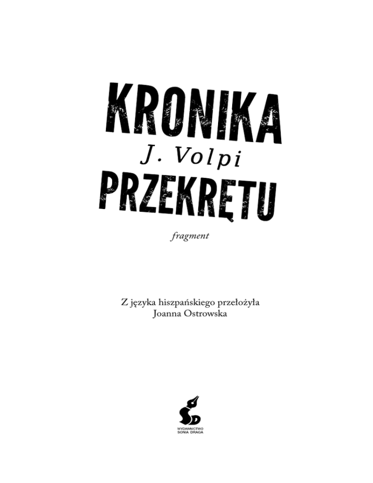 fragment Z języka hiszpańskiego przełożyła Joanna Ostrowska Uwertura Rankiem 23 kwietnia 2011 roku sekretarka położyła na moim biurku paczkę wysłaną zwykłą pocztą, bez nadawcy, ostemplowaną w Colombo, w której znajdował się list oraz rękopis zatytułowany Kronika przekrętu, podpisany przez J. Volpiego. Uznałem to za niesmaczny żart albo prowokację ze strony jakiegoś złośliwego autora z naszej agencji (przyszły mi do głowy dwa czy trzy nazwiska). Jak każdy nowojorczyk śledziłem z pewnym zainteresowaniem historię Volpiego, inwestora z Wall Street i mecenasa opery, który zgodnie z informacją opublikowaną w „Timesie” w październiku 2008 roku wyłudził od swoich klientów za pomocą czegoś w rodzaju schematu Ponziego około 15 miliardów dolarów, sumę znacznie mniejszą od 65 miliardów zdefraudowanych przez Bernarda Madoffa, ale wystarczająco dużą, żeby został uznany za jednego z wielkich przestępców finansowych wielkiej recesji, która rozpoczęła się w owym roku. Tyle że podczas gdy Madoff po przyznaniu się do sprzeniewierzenia tych pieniędzy został skazany na sto pięćdziesiąt lat więzienia, Volpi uciekł z kraju tuż przed wydaniem nakazu aresztowania i po dziś dzień brak jakichkolwiek wskazówek odnośnie do miejsca, w którym się ukrył. W liście, swoim czy też napisanym w jego imieniu, Volpi prosił mnie (niemal żądał), bym przeczytał jego autobiografię, a jeśli docenię jej „niezaprzeczalne walory dokumentalne i literackie”, bym zgodził się go reprezentować. Zraził mnie jego wyniosły i władczy ton – który zdaniem prasy zawsze charakteryzował jego publiczne wystąpienia – mimo to poprosiłem o opinię S.Ch., wówczas wicedyrektor agencji. Podeszła do sprawy równie sceptycznie jak ja i próbując pozbyć się zlecenia, postanowiła przekazać je jednemu z asystentów. Chcę, żebyś sama to przeczytała, napomniałem ją bez ceregieli. 9 Następnej soboty, akurat kiedy graliśmy z żoną w brydża ze znanym autorem powieści kryminalnych i jego małżonką, S.Ch. zadzwoniła, by poinformować mnie, że manuskrypt jest albo dziełem Volpiego, albo kogoś, kto znał go bardzo blisko; powinienem jak najszybciej rzucić na niego okiem. W poniedziałek pochłonąłem jednym tchem ponad jedną trzecią rękopisu, zanim dotarło do mnie, że muszę donieść o jego istnieniu władzom. Wybrałem numer FBI dopiero, kiedy doszedłem do końca; czytałem w lateksowych rękawiczkach, żeby nie zatrzeć ewentualnych odcisków palców na stronach manuskryptu. Kilka tygodni później eksperci doszli do tego samego wniosku co my: tekst zawiera lawinę danych, które mógł znać jedynie Volpi; nawet jeżeli jego autorem nie jest zbiegły finansista, musiał pomagać w pisaniu, prawdopodobnie jakiemuś ghostwriterowi. Niestety, tekst nie zawierał wskazówek, które ułatwiłyby jego zlokalizowanie albo zidentyfikowanie domniemanego wspólnika. I oczywiście nie było na nim żadnych czytelnych odcisków palców. Na zakończenie uciążliwego procesu sędzia federalny postanowił uznać rękopis za część majątku Volpiego i dołączył go do dóbr, które prokurator miał za zadanie wystawić na sprzedaż, by wynagrodzić straty osobom pokrzywdzonym przez finansistę. Zarówno Leah Levitt, druga żona Volpiego (która otrzymała rozwód dopiero trzy lata po jego zniknięciu), jak i jego córka Susan zgodziły się przekazać spodziewane tantiemy z wydania książki na fundusz mający złagodzić szkody wyrządzone przez jej autora. Po licytacji przeprowadzonej przy okazji Targów Książki we Frankfurcie w 2012 roku dzięki zainteresowaniu licznych wydawnictw Kronika przekrętu dotrze do czytelników. Dlaczego Volpi wysłał swoją książkę do agencji zajmującej się wy łącznie literaturą piękną, zamiast zwrócić się do którejś spośród wyspecjalizowanych w prozie non-fiction? Wprawdzie wpadliśmy na siebie podczas jakiejś gali dobroczynnej w Nowym Jorku czy na schodach do Lincoln Center, ale nigdy nie mieliśmy z Volpim okazji do rozmowy, nigdy też nie łączyła nas żadna osobista relacja. Podejrzewam, że odpowiedzi należy szukać gdzie indziej: legendarna wyniosłość, która doprowadziła do jego zawrotnego sukcesu i drastycznego upadku, sprawiła, że nie dopuszczał myśli, iż jego autobiografia miałaby się znaleźć pośród tysięcy bestsellerów poświęconych załamaniu systemu finansowego, wolał 10 uznać, że jego miejsce jest raczej obok trzynastu noblistów i dwudziestu dwóch laureatów nagrody Pulitzera figurujących na naszej liście autorów. Ważniejsza jest jednak odpowiedź na pytanie, dlaczego ja zgodziłem się go reprezentować, a dokładniej rzecz biorąc, zarządzać prawami do jego autobiografii. Chciałbym uprzedzić, że Volpi – albo jego ghost writer – posiada styl, który przeszedł moje oczekiwania (chociaż trudno porównywać go z innymi pisarzami naszej agencji). Pomijając formalne niedociągnięcia, rzadko można usłyszeć głos autora, który ignorując wszelkie środki ostrożności czy zasady etyczne, miałby odwagę opisać równie drobiazgowo i bezwstydnie finansową katastrofę ostatnich lat. Co więcej, Volpi opowiada historię swojego ojca, ekonomisty pochodzenia rosyjskiego, który podczas drugiej wojny światowej i konferencji w Bretton Woods pełnił funkcję asystenta Harry’ego Dextera White’a w Departamencie Skarbu. Obsesyjnie próbując odkryć, kim był jego ojciec, Volpi odtwarza pewien epizod z historii naszej polityki i moralności, który – dziś bardziej niż kiedykolwiek – nie powinien popaść w zapomnienie. Wreszcie jest to opowiedziana w pierwszej osobie historia pokolenia, które rozdarte między ryzykanctwem a chciwością pociągnęło świat ku jednej z największych gospodarczych i ludzkich katastrof ostatnich czasów. Jak powiedział któryś z analityków, nigdy tak niewielu nie zrobiło tak wiele przeciwko ta