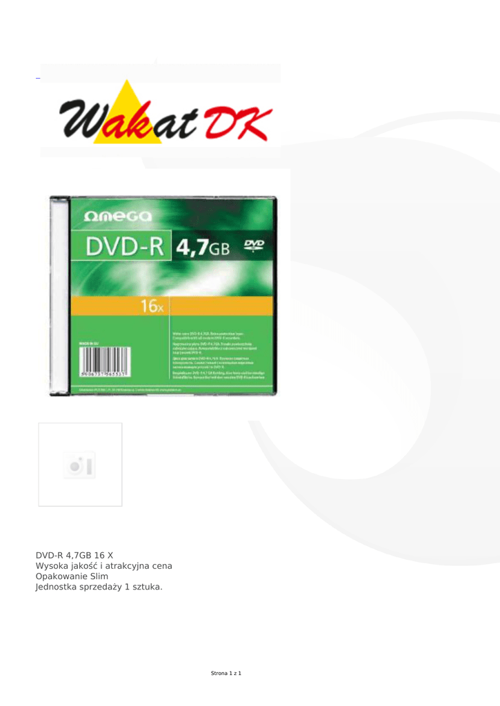 DVD-R 4,7GB 16 X Wysoka jakość i atrakcyjna cena Opakowanie Slim Jednostka sprzedaży 1 sztuka. Strona 1 z 1