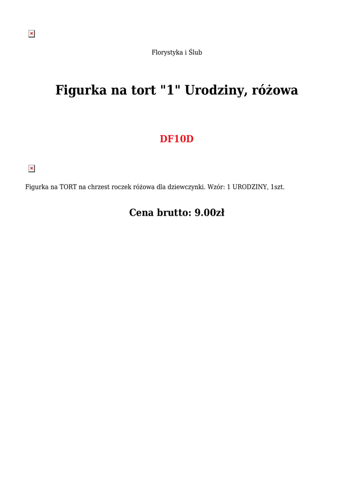 Florystyka i Ślub Figurka na tort "1" Urodziny, różowa DF10D Figurka na TORT na chrzest roczek różowa dla dziewczynki. Wzór: 1 URODZINY, 1szt. Cena brutto: 9.00zł