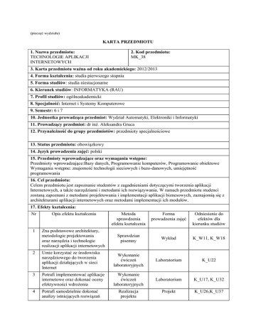 TECHNOLOGIE APLIKACJI INTERNETOWYCH 2. Kod przedmiotu