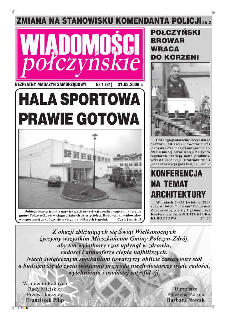 ZMIANA NA STANOWISKU KOMENDANTA POLICJI Str.2 PO£CZYÑSKI BROWAR WRACA DO KORZENI BEZP£ATNY MAGAZYN SAMORZ¥DOWY Nr 1 (31) 31.03.2009 r. HALA SPORTOWA PRAWIE GOTOWA Odk¹d gospodarzem po³czyñskiego browaru jest czeski inwestor firma jakby na przekór kryzysowi gospodarczemu ma siê coraz lepiej. Na rynek regularnie trafiaj¹ nowe produkty, wzrasta produkcja i zatrudnienie a jedna inwestycja goni kolejn¹. Str. 7 KONFERENCJA NA TEMAT ARCHITEKTURY Dobiega koñca jedna z najwiêkszych inwestycji zrealizowanych na terenie gminy Po³czyn-Zdrój w ci¹gu ostatnich dziesiêcioleci. Budowa hali widowiskowo sportowej zakoñczy siê w ci¹gu najbli¿szych tygodni. Czytaj na str. 3 CMYK W dniach 24-25 kwietnia 2009 roku w Hotelu Polanin Po³czynieZdroju odbêdzie siê Ogólnopolska Konferencja pn. ARCHITEKTURA KURORTOWA. Str. 20 wydarzenia www.polczyn-zdroj.pl ZMIANA NA STANOWISKU KOMENDANTA POLICJI Od pocz¹tku bie¿¹cego roku Komisariat Policji w Po³czynie-Zdroju ma nowego szefa. Po¿egnanie dotychczasowego komendanta i powitanie nowego odby³o siê podczas sesji Rady Miejskiej. Dotychczasowy komendant, nadkomisarz Robert Gaj sprawowa³ swoj¹ funkcjê od stycznia 2007 zastêpuj¹c na tym stanowisku wieloletniego szefa po³czyñskiej policji, Tadeusza Formê. Obecnie w zwi¹zku z awansem na zastêpcê komendanta Powiatowej Komendy Policji w £obzie Robert Gaj zakoñczy³ pracê w Po³czynie-Zdroju. Nowym komendantem Komisariatu Policji w naszym miecie zosta³ dotychczasowy zastêpca, nadkomisarz Leszek Tokarski. Podczas sesji odchodz¹cy komendant przeprowadzi³ prezentacjê na temat stanu bezpieczeñstwa w Po³czynie-Zdroju, z której wynika³o, ¿e nasza gmina ma jedn¹ z najni¿szych w województwie liczbê przestêpstw i jeden z najwy¿szych wskaników wykrywalnoci. (tao) NOWE STOWARZYSZENIE I ROZWÓJ TURYSTYKI W dniu 29 stycznia w Urzêdzie Miasta i Gminy w Po³czynie-Zdroju odby³o siê spotkanie powiêcone rozwojowi produktu turystycznego pod robocz¹ nazw¹ Polodowcowa Kraina Drawy i Dêbnicy. Idea stworzenia produktu turystycznego dotyczy obszaru, którego granice mieszcz¹ siê w trójk¹cie Po³czyn-Zdrój, Czaplinek, Barwice. Teren ten ze wzglêdu na walory przyrodnicze i krajobrazowe posiada wszelkie predyspozycje do rozwoju wielu form uprawiania turystyki. Dwa rezerwaty przyrody (Dolina Piêciu Jezior, Dolina Dêbnicy), pofa³dowana rzeba terenu, wododzia³ rzek Drawy i Dêbnicy, piêkne bukowe lasy to niemal gotowe atrakcje, które ju¿ obecnie przyci¹gaj¹ uwagê turystów. Jednak, aby spe³niæ oczekiwania mi³oników wypoczynku na ³onie natury konieczne jest stworzenie infrastruktury, która sprawi, ¿e obszar ten bêdzie bardziej dla nich dostêpny. Wprawdzie w Polodowcowej Krainie Drawy i Dêbnicy dzia³a kilkanacie gospodarstw agroturystycznych, pensjonatów i orodków, ale brakuje nowoczesnej otoczki zapewniaj¹cej atrakcyjne spêdzanie czasu równie¿ poza miejscem noclegu. Konieczne jest wyznaczenie i w³aciwe oznakowanie nowych szlaków pieszo-rowerowych, cie¿ek edukacyjno-przyrodniczych, okrelenie punktów widokowych, ustawienie tablic informacyjnych w ciekawych miejscach itp. Powodzenie ca³ej akcji zale¿y jednak równie¿ od dzia³añ typowo marketingowych. W celu wypromowania produktu konieczne bêdzie powstanie szeregu wydawnictw: folderów, albumów, map, ksi¹¿ek powiêconych walorom i historii Polodowcowej Krainy Drawy i Dêbnicy, a tak¿e 2 po³czyñskie WIADOMOCI opracowania koncepcji identyfikacji wizualnej zaprojektowanie logo, gad¿etów i pami¹tek, ustawienie witaczy przy drogach o du¿ym natê¿eniu ruchu samochodowego, promocji w mediach itp. Wszystkie te dzia³ania s¹ oczywicie uzale¿nione od rodków finansowych. Niestety, w obecnej sytuacji zawartoæ kas gminnych Po³czyna-Zdroju, Czaplinka i Barwic nie pozwala na realizacjê przedstawionych zamierzeñ ze rodków w³asnych. Konieczne jest zatem pozyskanie zewnêtrznych róde³ finansowania. ¯mudny proces ubiegania siê o rodki z programów pomocowych Unii Europejskiej musi byæ poprzedzony wieloma przygotowaniami i m.in. temu celowi powiêcone by³o styczniowe spotkanie w Po³czynieZdroju. W spotkaniu uczestniczy³o oko³o 30 osób przedstawiciele podmiotów gospodarczych z bran¿y turystycznej dzia³aj¹cy na terenie Polodowcowej Krainy Drawy i Dêbnicy oraz w³adze samorz¹dowe Po³czyna-Zdroju, Czaplinka i Barwic. Zebrani przyjêli (przedstawion¹ ju¿ w zaproszeniach) propozycjê powo³ania do ¿ycia stowarzyszenia, którego g³ównym celem bêdzie wdra¿anie nowego produktu turystycznego. Tym samym spotkanie przekszta³ci³o siê w zebranie za³o¿ycielskie stowarzyszenia, na którym zosta³ uchwalony statut, wybrane zosta³y w³adze, oraz podjêto wszystkie uchwa³y niezbêdne do rejestracji w Krajowym Rejestrze S¹dowym. Nowa organizacja przyjê³a nazwê Stowarzyszenie Polodowcowa Kraina Drawy i Dêbnicy. Sk³ad osobowy w³adz organizacji przedstawia siê nastêpuj¹co, Zarz¹d: 1. Barbara Nowak prezes Zarz¹du, 2. Robert Zborowski wiceprezes Zarz¹du, 3. Tomasz Chmielewski skarbnik, 4. Margot Niedziela-Suszek cz³onek Zarz¹du, 5. Jan Koman cz³onek Zarz¹du, Komisja Rewizyjna: 1. Jerzy Chodubski 2. Barbara Drzewiecka 3. Agnieszka Fiuk 4. Antoni Harasimiuk 5. Zygmunt Kula 6. Joanna Lorenc 7. Grzegorz Szymañski Jednym z podstawowych warunków odniesienia sukcesu w realizacji ca³ego przedsiêwziêcia (w tym pozyskania funduszy) jest przejcie od pomys³u do opracowania szczegó³owego planu dzia³añ. To zadanie decyzj¹ trzech samorz¹dów zosta³o powierzone Konsorcjum Doradczemu ProLandia z Poznania, firmie specjalizuj¹cej siê kszta³towaniu wizerunku regionów, opracowywaniu strategii i dzia³aniach promocyjnych. W drugiej czêci styczniowego spotkania przedstawiciele firmy zaprezentowali swój dotychczasowy dorobek, modelow¹ metodologiê budowania produktów turystycznych, oraz przeprowadzili otwart¹ dyskusjê w celu rozpoznania oczekiwañ i problemów podmiotów gospodaru