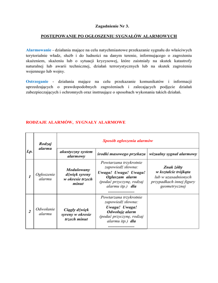 Zagadnienie Nr 3. POSTĘPOWANIE PO OGŁOSZENIU SYGNAŁÓW