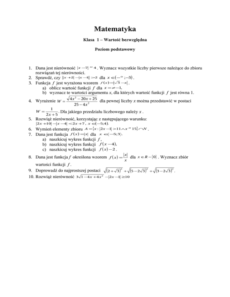 Klasa 1 – Wartość bezwzględna