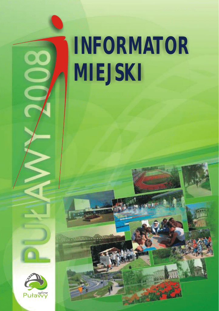 INFORMATOR MIEJSKI W ramach realizacji projektu „Puławy w sieci – wdrażanie rozwiązań społeczeństwa informacyjnego w mieście Puławy”, współfinansowanego przez Unię Europejską z funduszów Zintegrowanego Programu Operacyjnego Rozwoju Regionalnego, powstał nowy serwis internetowy Urzędu Miasta Puławy. Portal jest źródłem wiadomości na temat samorządu i jego działań oraz instytucji działających w naszym mieście. Ukazuje również atrakcyjność Puław pod względem turystycznym i gospodarczym. Dzięki zaprogramowanym czterem serwisom tematycznym: e-gospodarka, e-praca, e-turystyka i e-urzad portal jest nosnikiem informacji o walorach przyrodniczych i atrakcjach turystycznych Pulaw i okolic, a takze o ofercie inwestycyjnej i srodowisku biznesu. Daje również możliwość zapoznania się z ofertami pracy i profilami działalności puławskich firm. W przyszłości planowana jest rozbudowa serwisu, tak by mieszkańcy mogli załatwiać sprawy urzędowe za pośrednictwem Internetu. www.um.pulawy.pl INFORMATOR Opracowanie: Urząd Miasta Puławy Biuro Promocji i Współpracy z Zagranicą 24-100 Puławy ul. Lubelska 5 tel. (081) 880 45 00 faks (081) 880 45 02 e-mail: [email protected] www.um.pulawy.pl Skład i druk na zlecenie Urzędu Miasta Puławy: DRUKARNIA ELKO Sp. j. 24-130 Końskowola ul. Kurowska 71 tel./faks (081) 881 64 16 e-mail: [email protected] www. elkodruk.pl „Informator Miejski. Puławy 2008” – trzecia edycja Copyright © by Urząd Miasta Puławy PUŁAWY 2008 SPIS TREŚCI OD PREZYDENTA .................................................................................................................... 11 NASI REKLAMODAWCY ......................................................................................................... 13 FUNDUSZE UNIJNE ................................................................................................................. 15 PUŁAWY – MIASTO BEZ BARIER ........................................................................................... 18 TURYSTYKA I REKREACJA ...................................................................................................... 19 SYSTEM IDENTYFIKACJI WIZUALNEJ.................................................................................... 21 RADA MIASTA PUŁAWY ................................................................................................. 22 SKŁAD RADY MIASTA PUŁAWY V KADENCJI ................................................................ 23 KOMISJE RADY MIASTA PUŁAWY V KADENCJI ............................................................... Komisja Bezpieczeństwa i Porządku Publicznego Komisja Budżetu i Finansów Komisja Edukacji Komisja Gospodarki Miejskiej Komisja Kultury Fizycznej i Sportu Komisja Mieszkaniowa Komisja Planowania Przestrzennego i Ochrony Środowiska Komisja Promocji Miasta, Kultury, Turystyki i Współpracy z Zagranicą Komisja Rewizyjna Komisja Zdrowia i Opieki Społecznej 25 25 25 25 26 26 26 26 26 27 27 WŁADZE MIASTA ............................................................................................................... 28 URZĄD MIASTA ................................................................................................................... 29 WYDZIAŁY URZĘDU MIASTA ........................................................................................... Biuro Kontroli Wewnętrznej i Audytu Biuro Prawne Biuro Promocji i Współpracy z Zagranicą – Pełnomocnik Prezydenta ds. polityki informacyjnej – Telecentrum Biuro Rady Miasta Biuro Zamówień Publicznych Biuro Zarządzania Projektami Biuro Zieleni Miejskiej Wydział Administracyjno-Gospodarczy – Oddział Informatyczny Wydział Budownictwa i Planowania Przestrzennego Wydział Edukacji i Sportu – Oddział Obsługi Finansowo-Księgowej Oświaty Wydział Finansowy – Oddział Księgowości Budżetowej – Oddział Podatkowy 29 29 30 30 30 30 30 31 31 32 32 32 33 33 34 34 35 35 3 4 SPIS TREŚCI INFORMATOR Wydział Gospodarki Nieruchomościami Wydział Kultury i Spraw Społecznych – Pełnomocnik Prezydenta ds. patologii społecznej – Pełnomocnik Prezydenta ds. współpracy z organizacjami pozarządowymi i innymi podmiotami niezaliczanymi do sektora finansów publicznych Wydział Nadzoru Komunalnego, Spraw Lokalowych i Działalności Gospodarczej – Oddział Działalności Gospodarczej – Oddział Spraw Lokalowych Wydział Ochrony Środowiska Wydział Organizacyjny – Punkt Obsługi Interesanta Wydział Programowania Inwestycji Wydział Spraw Obywatelskich Wydział Zarządzania Kryzysowego i Ochrony Ludności 37 37 38 38 38 39 39 40 40 40 41 41 42 STRAŻ MIEJSKA .................................................................................................................... 43 URZĄD STANU CYWILNEGO .......................................................................................... 44 MIASTA PARTNERSKIE ........................................................................................................ Grupa Inicjatywna Puławy – Bojarka (Ukraina) Współpraca z Castelo Branco (Portugalia) Grupa Inicjatywna Puławy – Douai (Francja) Grupa Inicjatywna Puławy – Dublany (Ukraina) Grupa Inicjatywna Puławy – Nieśwież (Białoruś) Grupa Inicjatywna Puławy – Nieuwegein (Holandia) Grupa Inicjatywna Puławy – Stendal (Niemcy) 48 48 48 48 49 49 49 49 USŁUGI KOMUNALNE ...................................................................................................... 50 DOSTAWA WODY I ODPROWADZANIE ŚCIEKÓW ..................................................... 50 Miejskie Przedsiębiorstwo Wodociągów i Kanalizacji „Wodociągi Puławskie” sp. z o.o. 50 ZBIÓRKA I UNIESZKODLIWIANIE ODPADÓW ............................................................. 50 Zakład Usług Komunalnych sp. z o.o. 50 ZUK sp. z o.o. Zakład Unieszkodliwiania Odpadów Komunalnych 50 DOSTAWA CIEPŁA ..............................