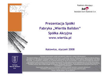 Prezentacja Spółki Fabryka „Wiertła Baildon”