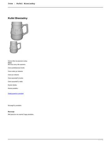 Inne : Kufel Biesiadny Kufel Biesiadny Ocena Nie ma jeszcze oceny Cena Ró?nica ceny dla wariantu Cena podstawowa brutto: Cena netto po rabacie: Cena po rabacie Cena sprzeda?y brutto: Cena sprzeda?y netto: Kwota rabatu: Kwota podatku: Zadaj pytanie o produkt Szczegó?y produktu Recenzje Nikt jeszcze nie ocenia? tego produktu. 1 / 1 Powered by TCPDF (www.tcpdf.org)