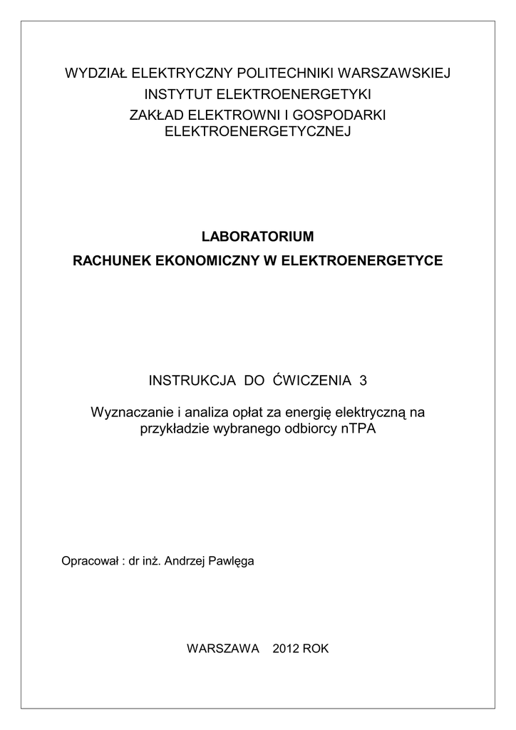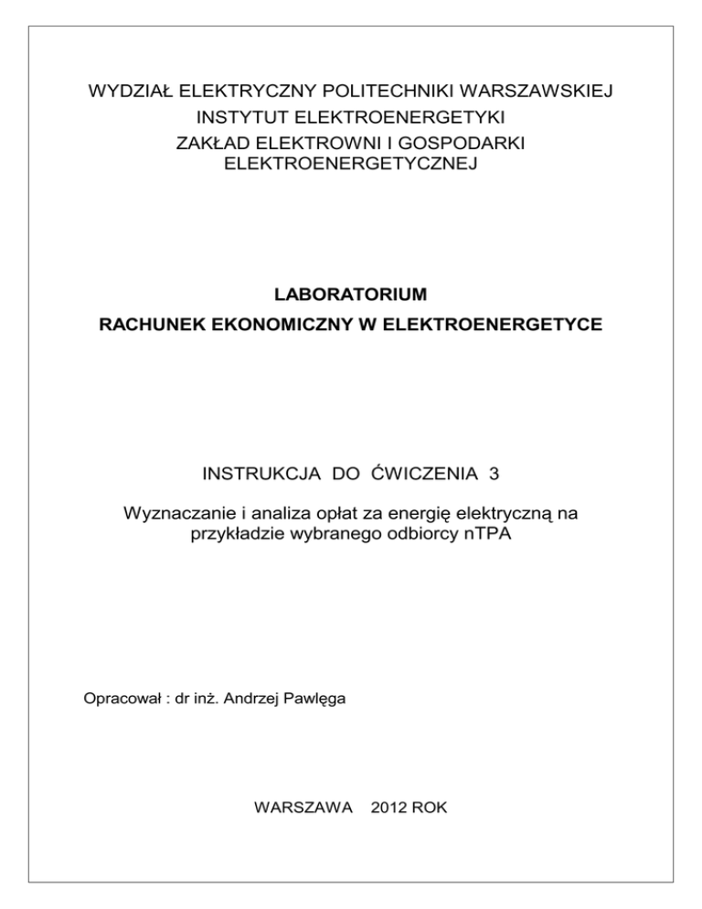 Wyznaczanie i analiza opłat za energię elektryczną na