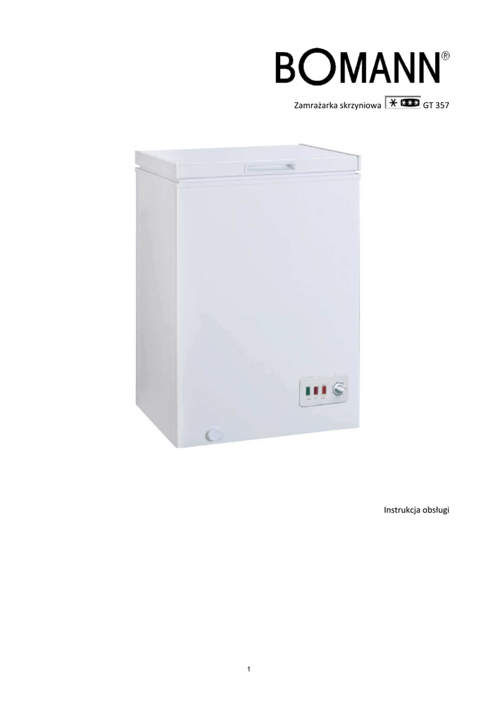 Zamrażarka skrzyniowa GT 357 Instrukcja obsługi 1 Spis treści Wstęp Ogólne wskazówki dotyczące bezpieczeństwa WAŻNE WSKAZÓWKI DOTYCZĄCE UŻYTKOWANIA I BEZPIECZEŃSTWA Rozpakowywanie urządzenia Opis produktu Instalacja Pierwsze uruchomienie/działanie Wskazówki dotyczące oszczędzania energii Czyszczenie Naprawy Rozwiązywanie problemów Dane techniczne Warunki gwarancji/obsługa klienta 2 WSTĘP Dziękujemy, że zdecydowali się Państwo na zakup naszego urządzenia, życzymy Państwu zadowolenia z dokonanego zakupu. Symbole użyte w instrukcji. Ważne informacje dotyczące bezpieczeństwa są oznakowane w szczególny sposób. Należy koniecznie przestrzegać tych wskazówek aby zapobiec wypadkom i szkodom: OSTRZEŻENIE Ostrzega przed niebezpieczeństwem dla zdrowia i wskazuje na możliwe ryzyko zranienia. UWAGA Wskazuje na zagrożenia dla urządzenia i innych przedmiotów WSKAZÓWKA Wyróżnia rady i ważne dla Państwa informacje Informacje ogólne Przed pierwszym uruchomieniem urządzenia należy uważnie przeczytać niniejszą instrukcję obsługi. Zachować instrukcję wraz z kartą gwarancyjną i paragonem do późniejszego użytkowania. Należy ją także przekazać ewentualnemu następnemu posiadaczowi. • Urządzenia należy używać wyłącznie w celach prywatnych przewidzianych w niniejszej instrukcji. Urządzenie nie jest przeznaczone do użytku komercyjnego. • Urządzenia należy używać tylko w sposób opisany w instrukcji. Każdy inny sposób użytkowania jest traktowany jako niezgodny z przeznaczeniem i może prowadzić do uszkodzenia urządzenia lub wypadku z udziałem użytkownika. • Nie używać urządzenia na wolnym powietrzu. Chronić przed ciepłem, bezpośrednim promieniowaniem słonecznym i wilgocią. • Należy wyłączyć bezpiecznik lub wyłączyć i odłączyć urządzenie od prądu (ciągnąc za wtyczkę, nie za przewód), jeżeli nie jest ono używane, na czas czyszczenia, konserwacji lub w przypadku awarii. • Urządzenie i jeżeli to możliwe przewód zasilający należy regularnie sprawdzać pod kątem występowania uszkodzeń. Uszkodzone urządzenie nie może być dalej używane. • Przebudowy i zmiany w urządzeniu są zabronione z przyczyn bezpieczeństwa. • Dla bezpieczeństwa Państwa dzieci nie należy zostawiać elementów opakowania (karton, folia, styropian) w miejscach dla nich dostępnych. OSTRZEŻENIE: Nie pozwalać dzieciom bawić się folią. Niebezpieczeństwo uduszenia! 3 WAŻNE WSKAZÓWKI DOTYCZĄCE UŻYTKOWANIA I BEZPIECZEŃSTWA Urządzenie przeznaczone jest do używania w gospodarstwie domowym lub podobnych placówkach. Na przykład: - kuchnie dla personelu i załogi w supermarketach, biurach, i placówkach socjalnych, -gospodarstwach rolnych, pokojach hotelowych i podobnych placówkach oferujących noclegi -pensjonatach śniadaniowych, - w cateringu i podobnych zastosowaniach poza handlem detalicznym OSTRZEŻENIE! • Należy się upewnić że otwory wentylacyjne w obudowie urządzenia nie są zablokowane. • Do przyspieszenia procesu rozmrażania (jeżeli jest on konieczny ) nie używać żadnych środków mechanicznych poza opisanymi w instrukcji i dołączonymi do urządzenia (zależne od modelu). • Nie uszkadzać obiegu chłodziwa. • Nie włączać urządzeń elektrycznych wewnątrz urządzenia. • Nie przechowywać w urządzeniu materiałów które mogą wybuchnąć, jak na przykład aerozole ze sprężonym palnym gazem. • Urządzenie może być obsługiwane przez dzieci od 8 roku życia i osoby o ograniczonych zdolnościach fizycznych, sensorycznych i psychicznych, a także z niewystarczającą wiedzą i/lub doświadczeniem, o ile są oni pod opieką lub zostali przeszkoleni w zakresie bezpiecznego użytkowania urządzenia i zrozumieli wynikające z tego niebezpieczeństwa. • Dzieci nie mogą bawić się urządzeniem. • Dzieci nie mogą czyścić urządzenia ani przeprowadzać zabiegów konserwacyjnych, chyba że są starsze niż 8 lat i znajdują się pod opieką dorosłych. • Nie naprawiać urządzenia samodzielnie, wezwać autoryzowanego specjalistę. By zapobiec zagrożeniom uszkodzony przewód sieciowy może być wymieniony przez producenta, autoryzowanego technika lub obsługę klienta. Jeżeli przewód sieciowy jest uszkodzony nie należy używać urządzenia. • W celu utylizacji należy skorzystać z punktu zbiórki elektrośmieci. 4 Chłodziwo OSTRZEŻENIE W układzie chłodzącym urządzenia znajduje się chłodziwo Izobutan (R600a), palny gaz naturalny wysoce przyjazny środowisku. Podczas transportu i ustawiania urządzenia uważać aby nie doszło do uszkodzenia żadnego elementu układu chłodzącego. W przypadku uszkodzenia układu chłodzącego należy: - koniecznie unikać otwartego ognia i źródeł płomieni - odłączyć urządzenie od zasilania - dobrze przewietrzyć pomieszczenie, w którym znajduje się urządzenie - wezwać specjalistę Rozpakowywanie urządzenia • Wyjąć urządzenie z opakowania. • Usunąć wszystkie elementy opakowania: folię, materiał wypełniający i kartonowe opakowanie. • Sprawdzić urządzenie pod kątem szkód powstałych podczas transportu, aby uniknąć zagrożeń. • Jeżeli urządzenie jest uszkodzone, nie należy go uruchamiać ale natychmiast skontaktować się ze sprzedawcą. WSKAZÓWKA W urządzeniu mogą znajdować się pozostałości poprodukcyjne i kurz. Zalecamy wyczyszczenie urządzenia tak jak opisano we fragmencie „czyszczenie i konserwacja”. Opis urządzenia WSKAZÓWKA Rysunki pokazane w instrukcji mogą różnić się od wyglądu rzeczywistego urządzenia. 5 1 Wbudowany uchwyt pokrywy 2 3 4 5 6 Kosz zamrażarki Regulator temperatury Regulowane nóżki z przodu, rolki z tyłu Otwór odpływowy wody roztopowej Przewód zasilający Zakres dostawy 1x kosz zamrażarki, 1x skrobak do lodu Ustawianie Wymagania odnośnie miejsca użytkowania urządzenia - Konieczne jest prawidłowa wentylacja dookoła urządzenia, aby 