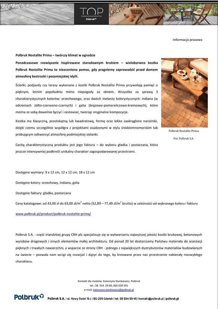 Informacja prasowa Polbruk Nostalite Prima – twórczy klimat w