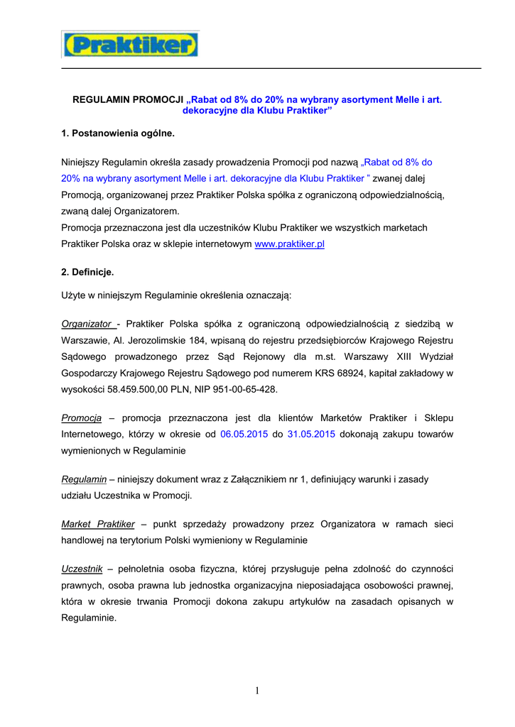REGULAMIN PROMOCJI „-15% dla Klubu Praktiker”