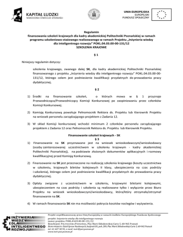 Regulamin finansowania szkoleń krajowych dla kadry akademickiej