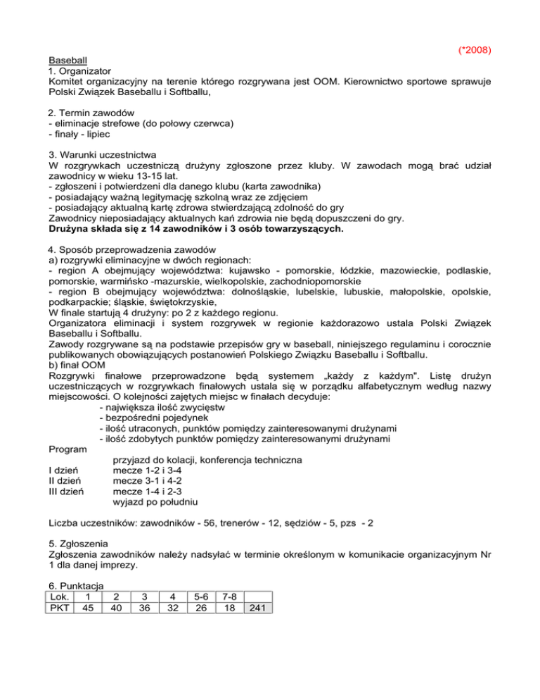 (*2008) Baseball 1. Organizator Komitet organizacyjny na terenie