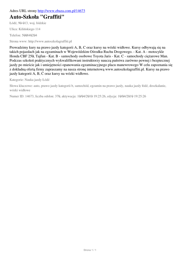 Auto-Szkola "Graffiti", Lodz, Kilinskiego 114
