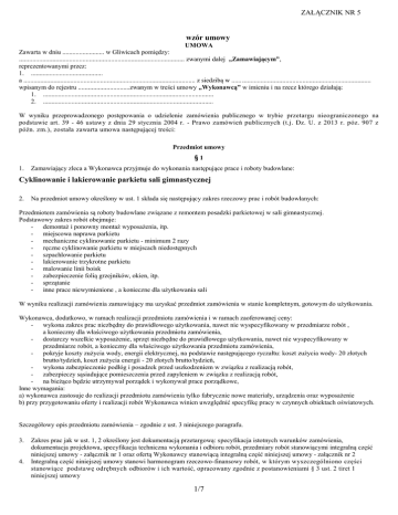 1/7 wzór umowy Cyklinowanie i lakierowanie parkietu sali