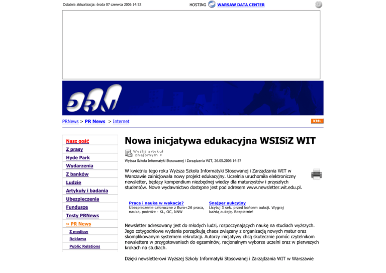 PRNews - Nowa inicjatywa edukacyjna WSISiZ WIT | news
