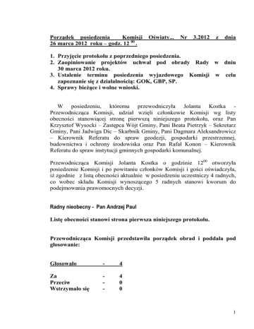 Protokół Nr 3.2012 Posiedzenia Komisji Oświaty